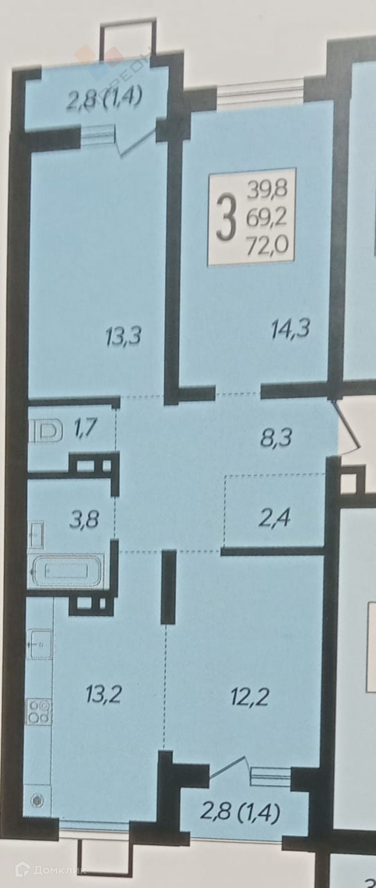 Общая площадь 72.5 м2