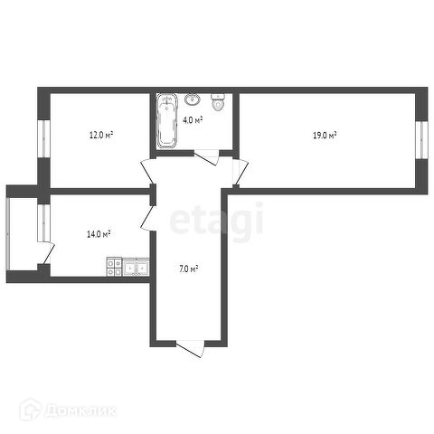 Общая площадь 56.6 м2