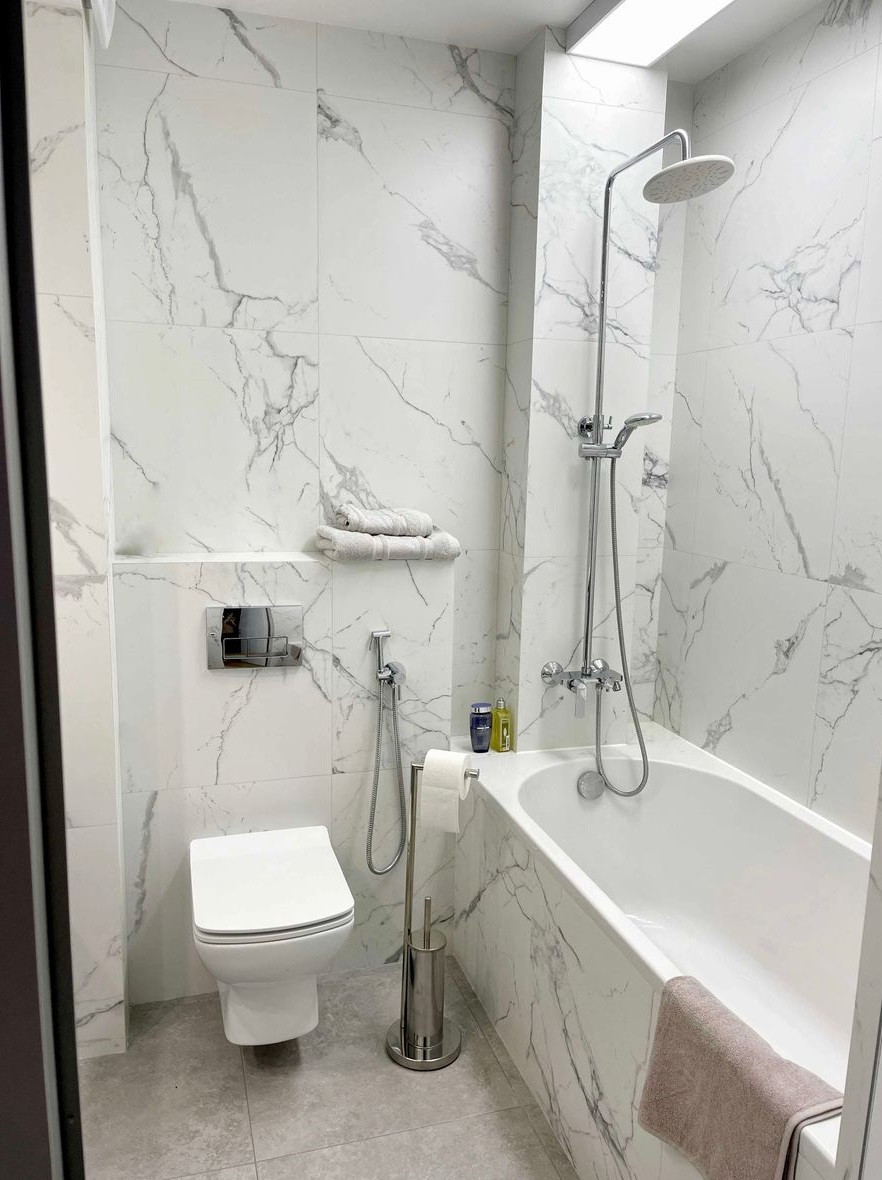 Рядом с квартирой расположено множество магазинов, где можно приобрести все необходимое для повседневной жизни. Также в непосредственной близости есть школа и детский сад, что делает это место привлекательным для семей с детьми.