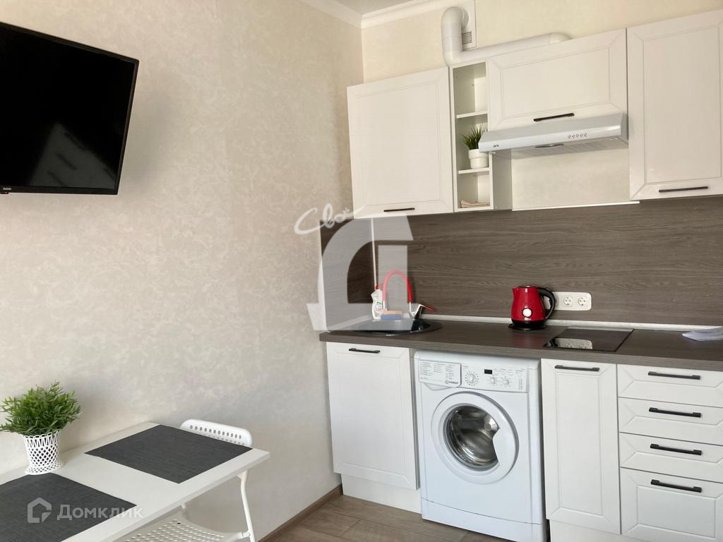 Студия расположена на 14 этаже монолитно-кирпичного дома комфорт+, площадь студии 24 кв м, сделан евроремонт из дорогих материалов, зона застекленной лоджии совмещена с гостиной без переноса мокрых точек, что делает студию  более просторной и видовой. На лоджии- зона отдыха. Студия полностью укомплектована для комфортного проживания: кухня с варочной панелью, духовой шкаф, вытяжка, микроволновая печь, стиральная машина, сплит-система.