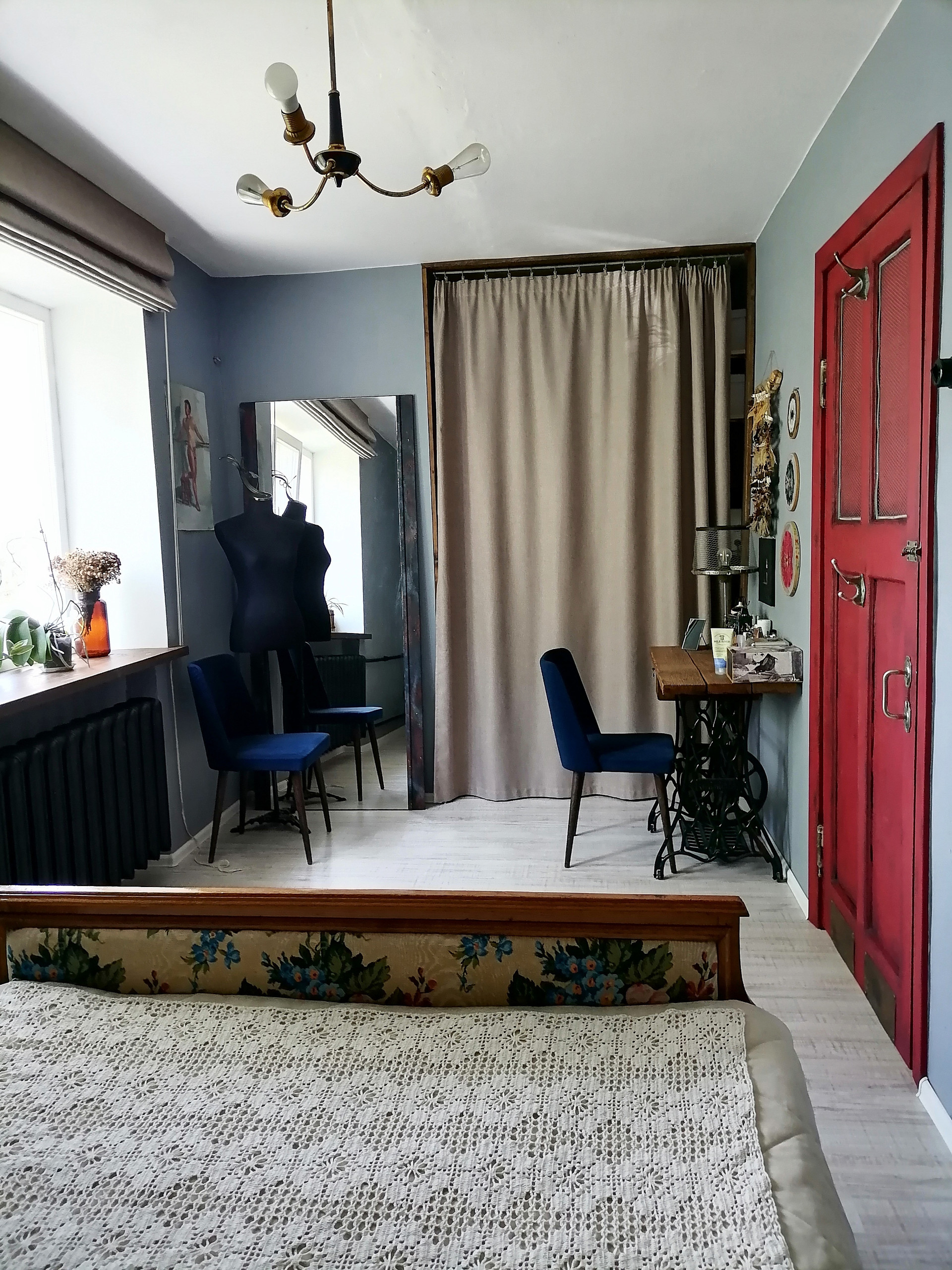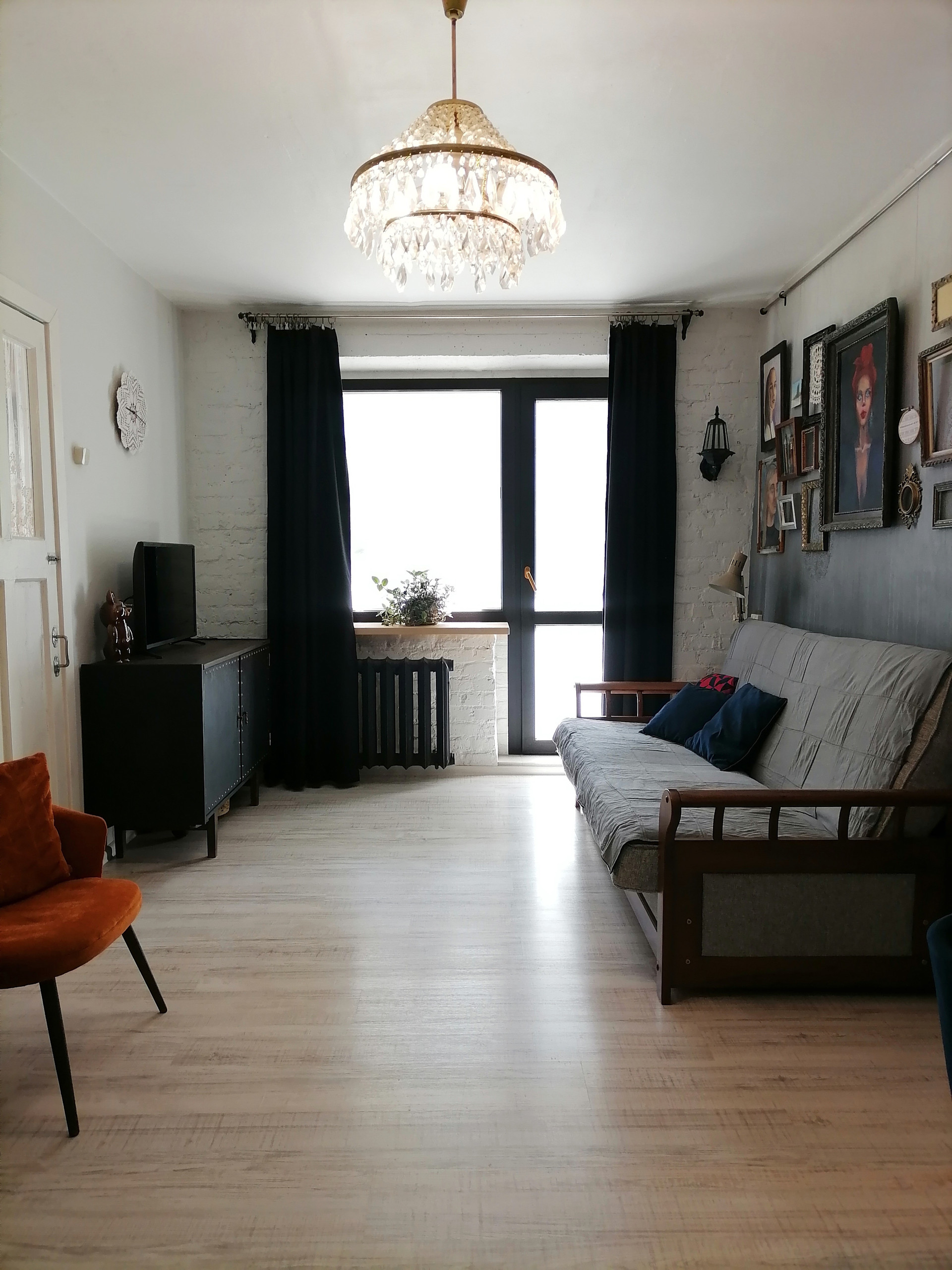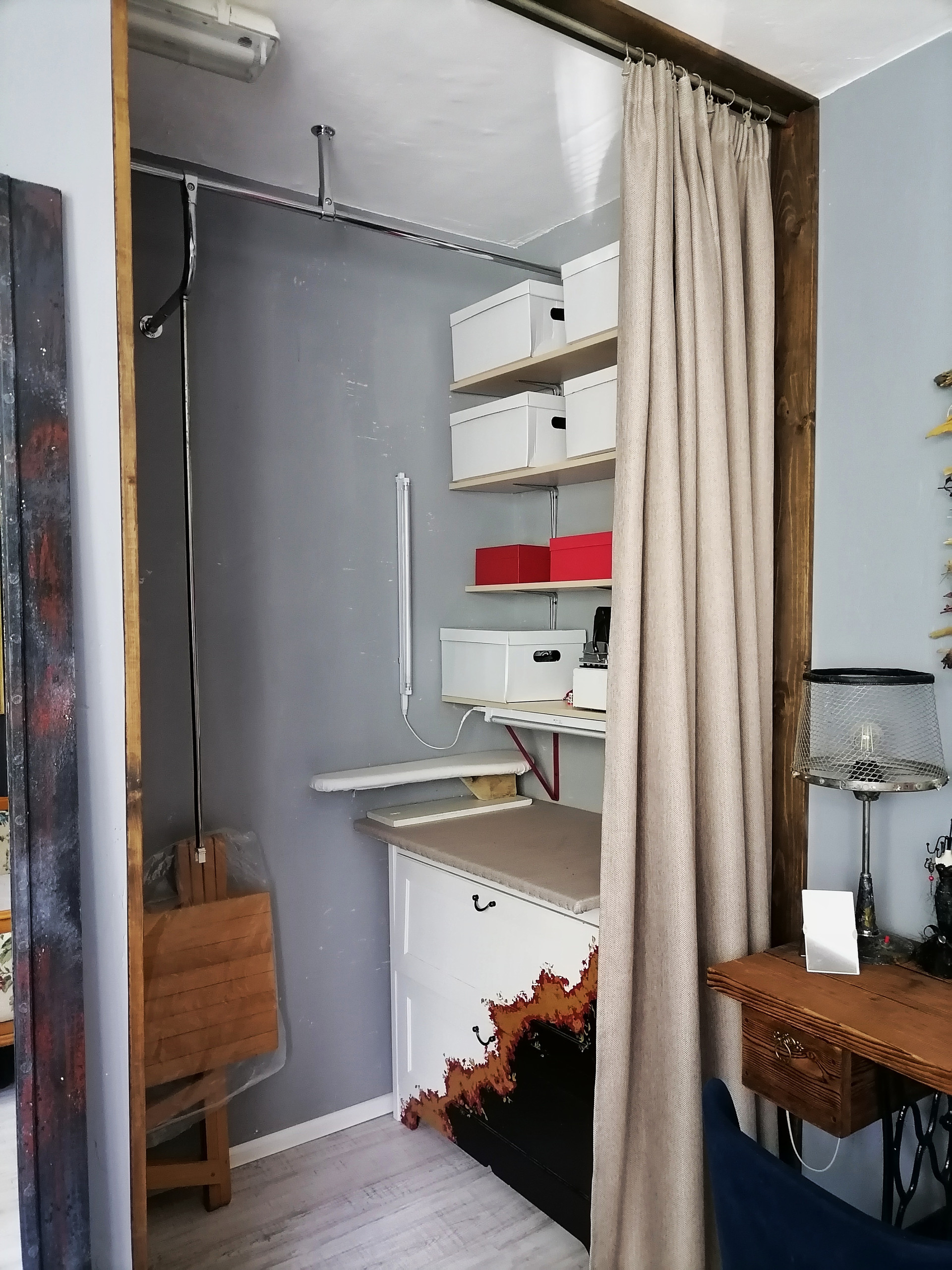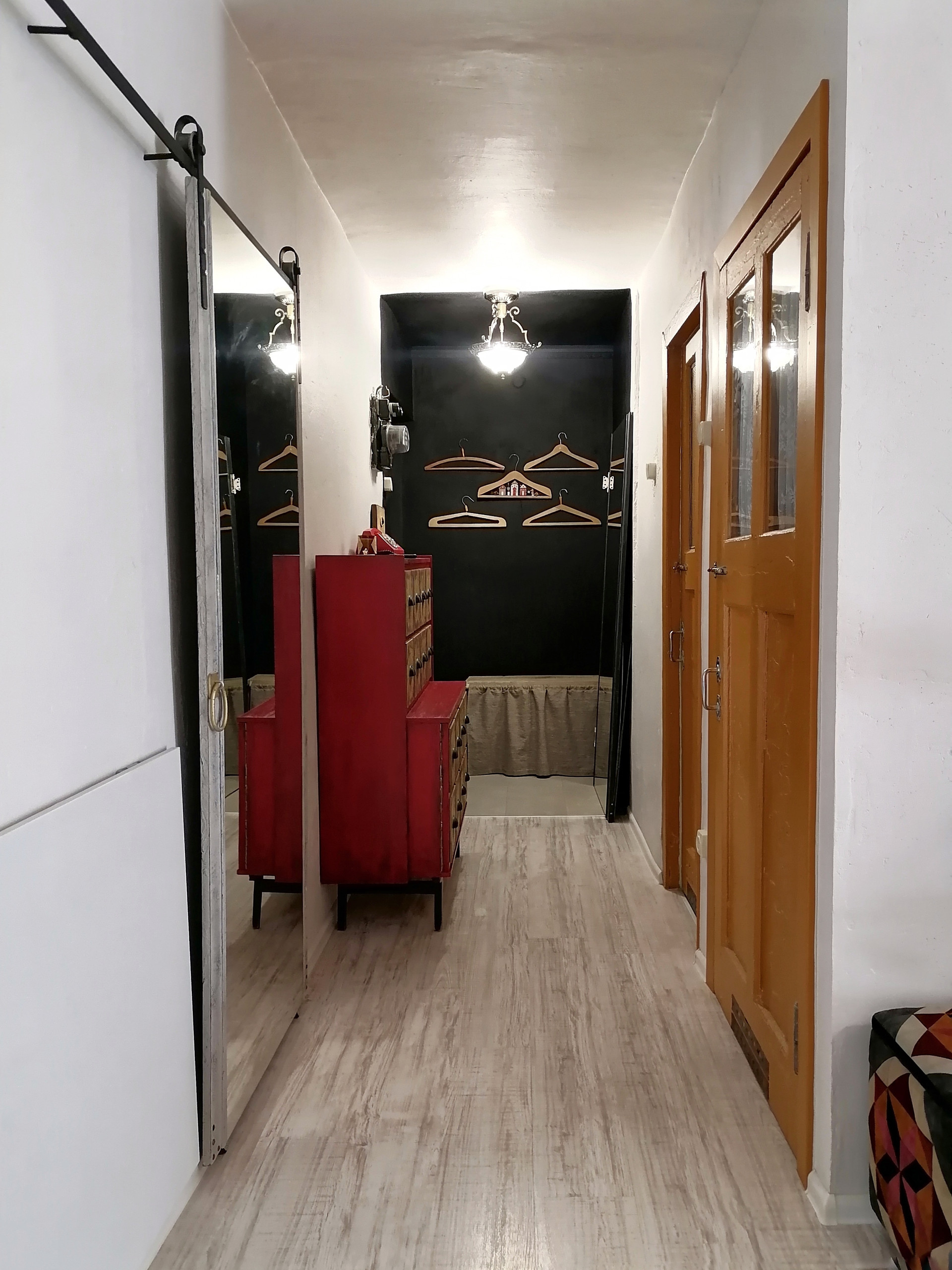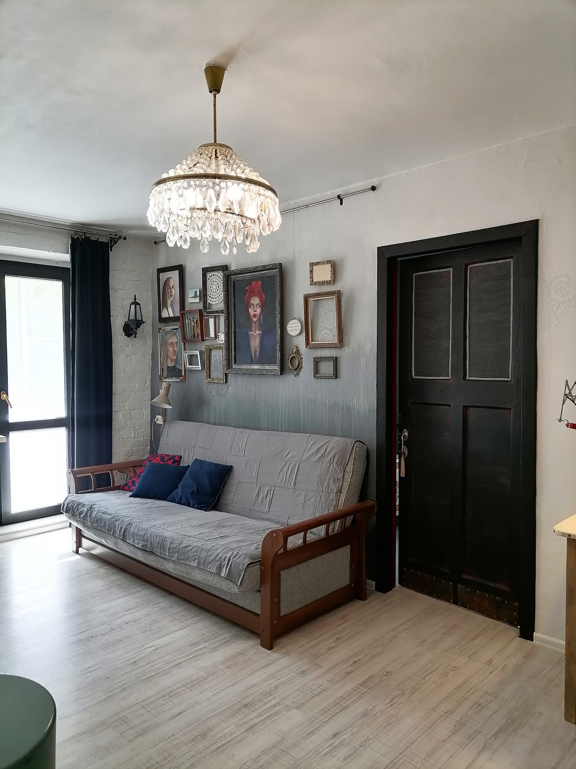 В квартире выстроено 2 гардеробных для верхней и летней одежды. Частично остаётся мебель, пока не придумали какая.