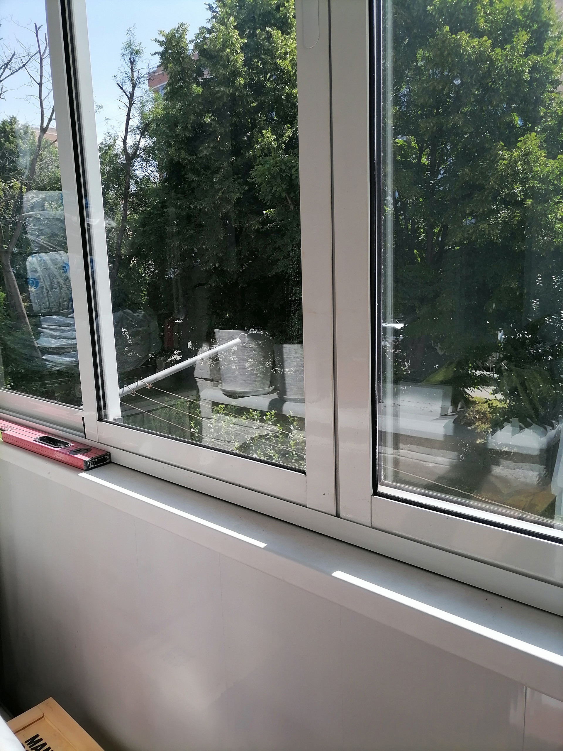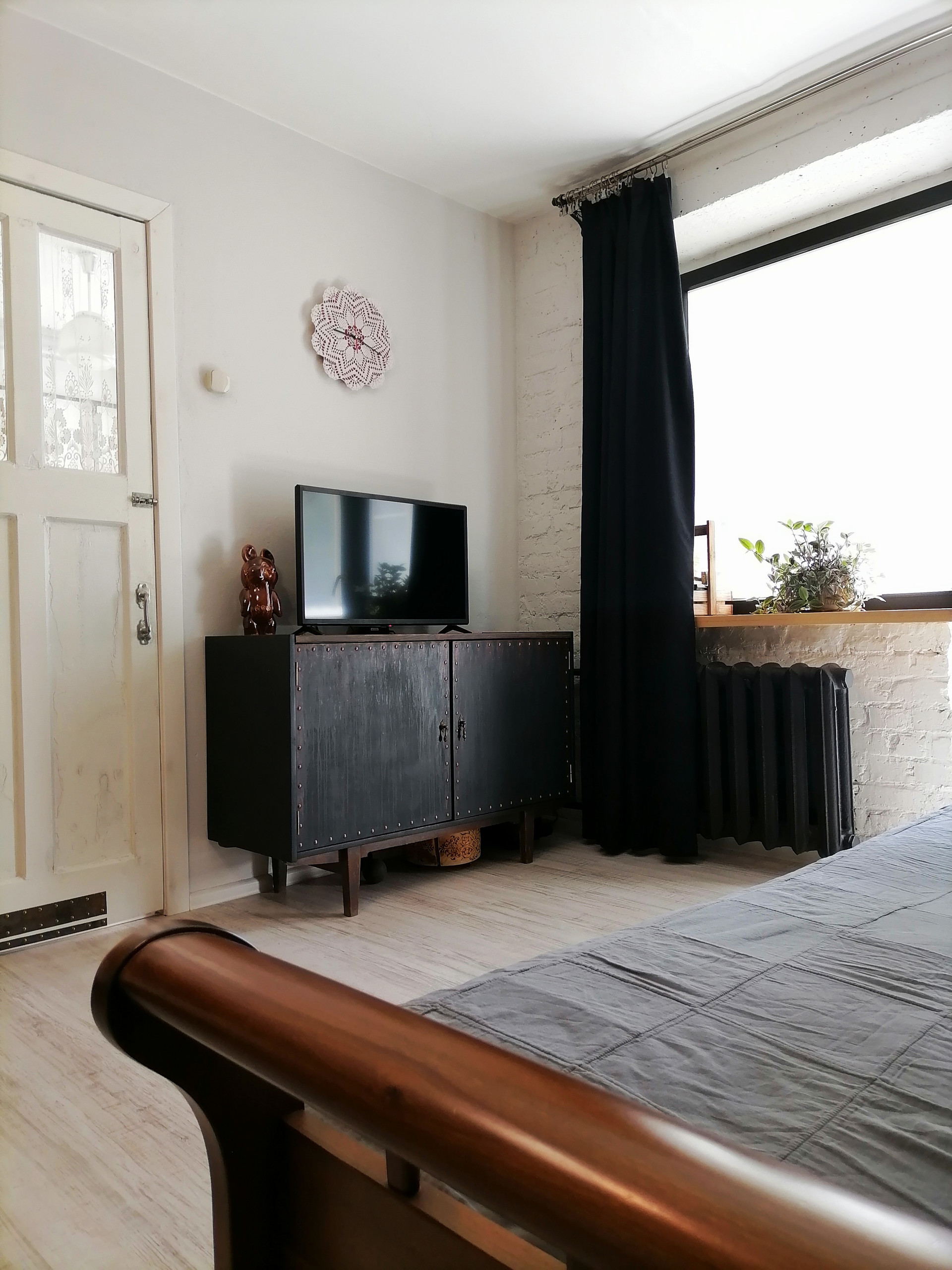 Окна ПВХ выходят на восток и юг, но при этом в квартире тепло зимой и не жарко летом из-за толстых стен. Везде деревянные подоконники. Балкон так же остеклён ПВХ.