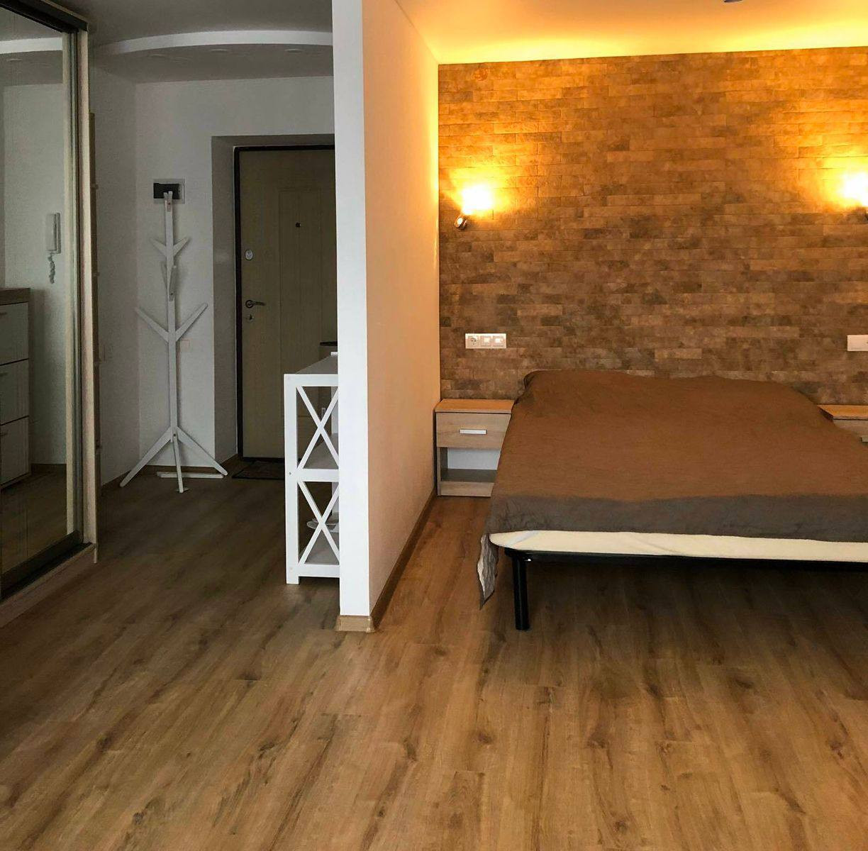 Спальная зона обеспечивает спокойствие и комфорт после долгого рабочего дня. Просторная ванная комната современно оформлена и оснащена всеми удобствами.