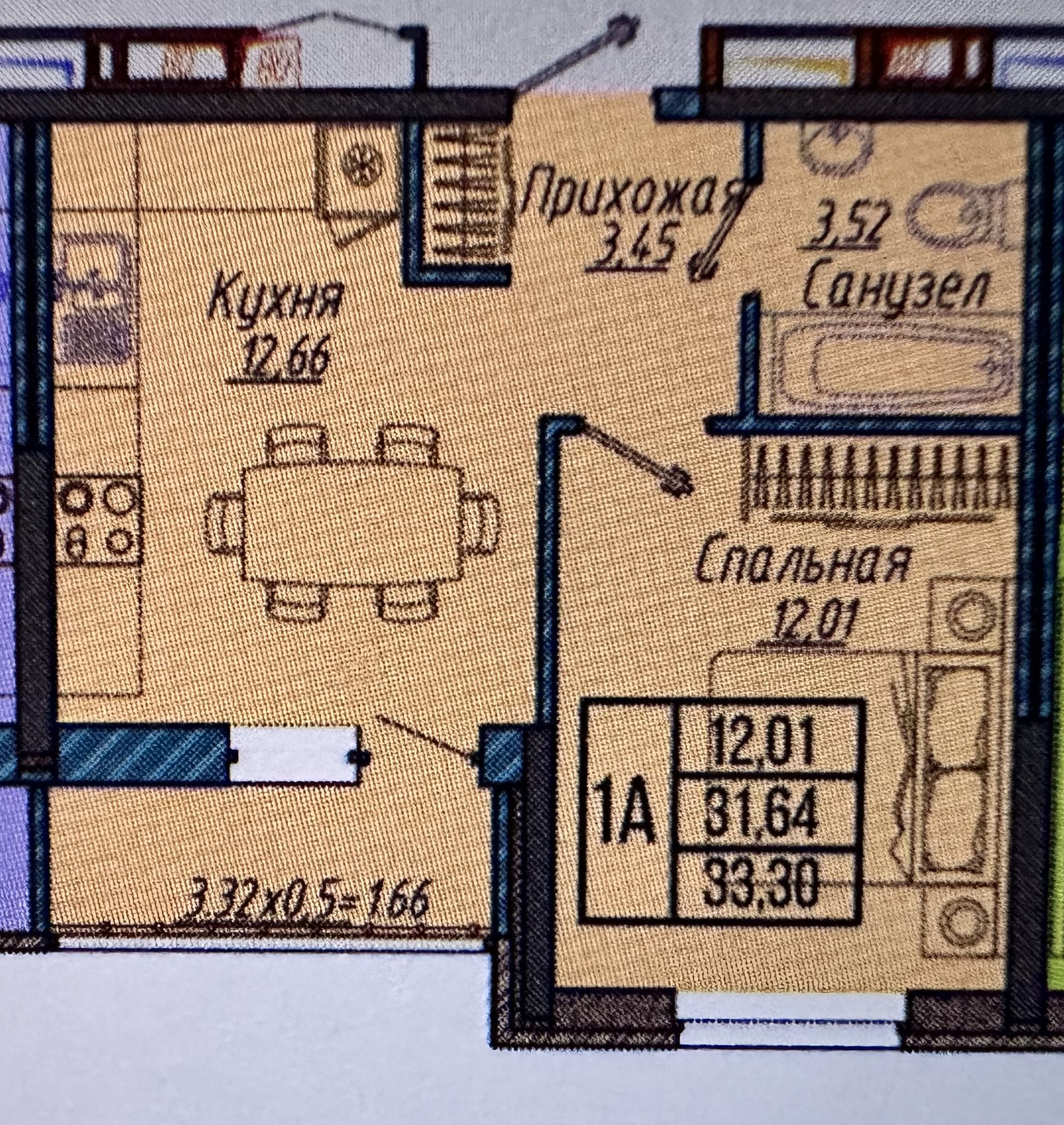 Площадь кухни 12.66 м2