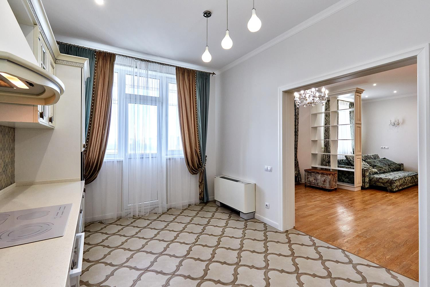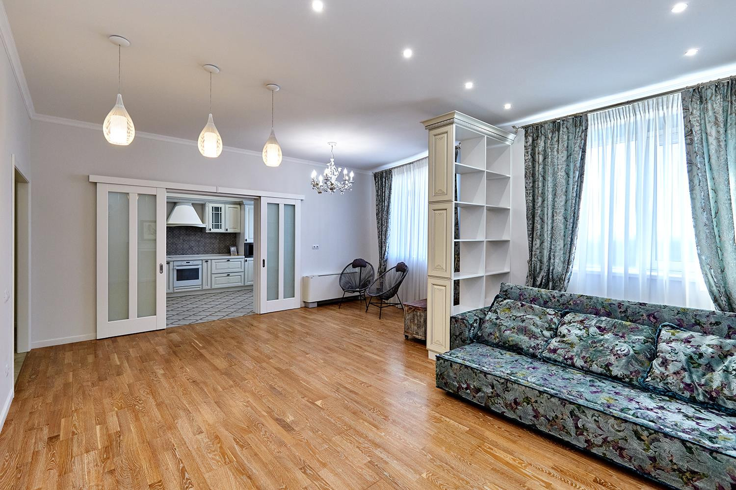 Три отдельные спальни, гостиная и кухня-столовая, два сан узла и удобная гардеробная. Дизайнерский ремонт, где учитывалась каждая мелочь в интерьере.