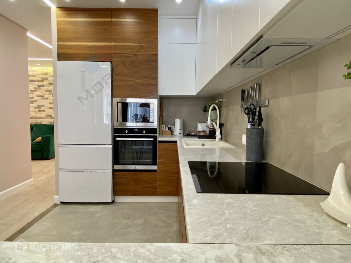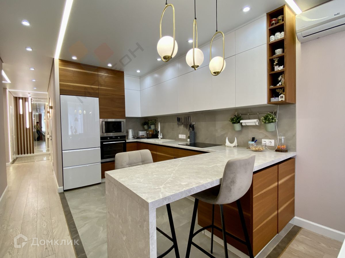 Шикарная квартира с новым  дизайнерским ремонтом. Выполнена перепланировка квартиры, узаконенная должным образом. Имеются два санузла, две гардеробные, кладовки, балкон оборудован под рабочую зону и полноценная холл-гостиная. Теплый пол имеется в гостиной, кухне, балконе и частично в одной из детской комнате и центральном зале. Установлены 4 инверторные сплит-системы. В квартире установлен бойлер на 100 литров с системой очистки воды. Квартира теплая, светлая, уютная. Большая часть мебели и техники остаётся. Один собственник. В шаговой доступности школы, супермаркеты, остановка транспорта.Во дворе жилого комплекса магазины, детские и спортивные площадки, детский садик. Одно из лучших предложений на рынке по планировке и дизайнерским решениям которые применены. Номер объекта: #150/1281640/3069