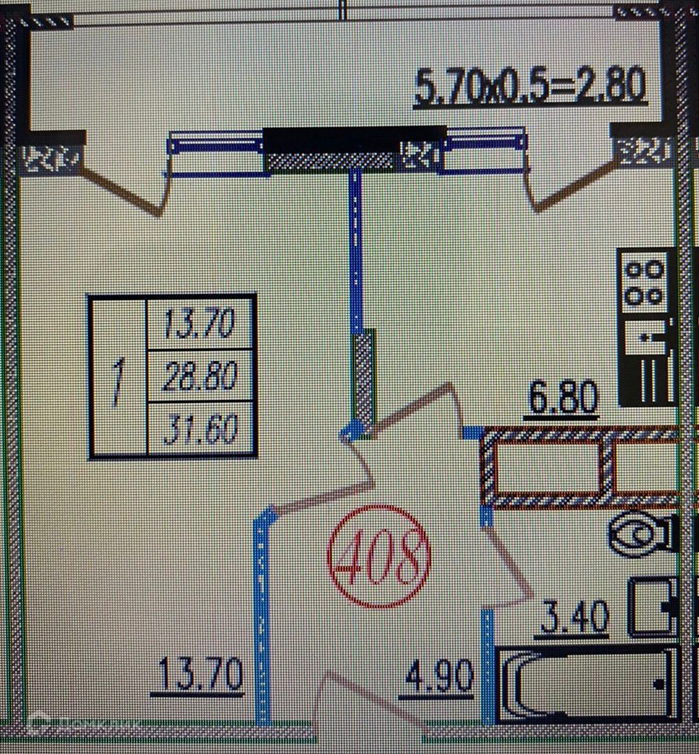 Площадь кухни 6.8 м2