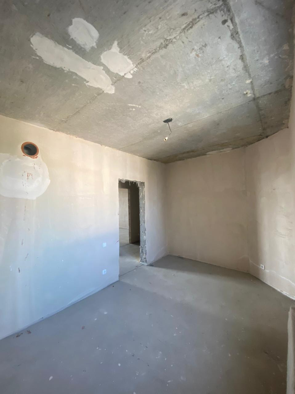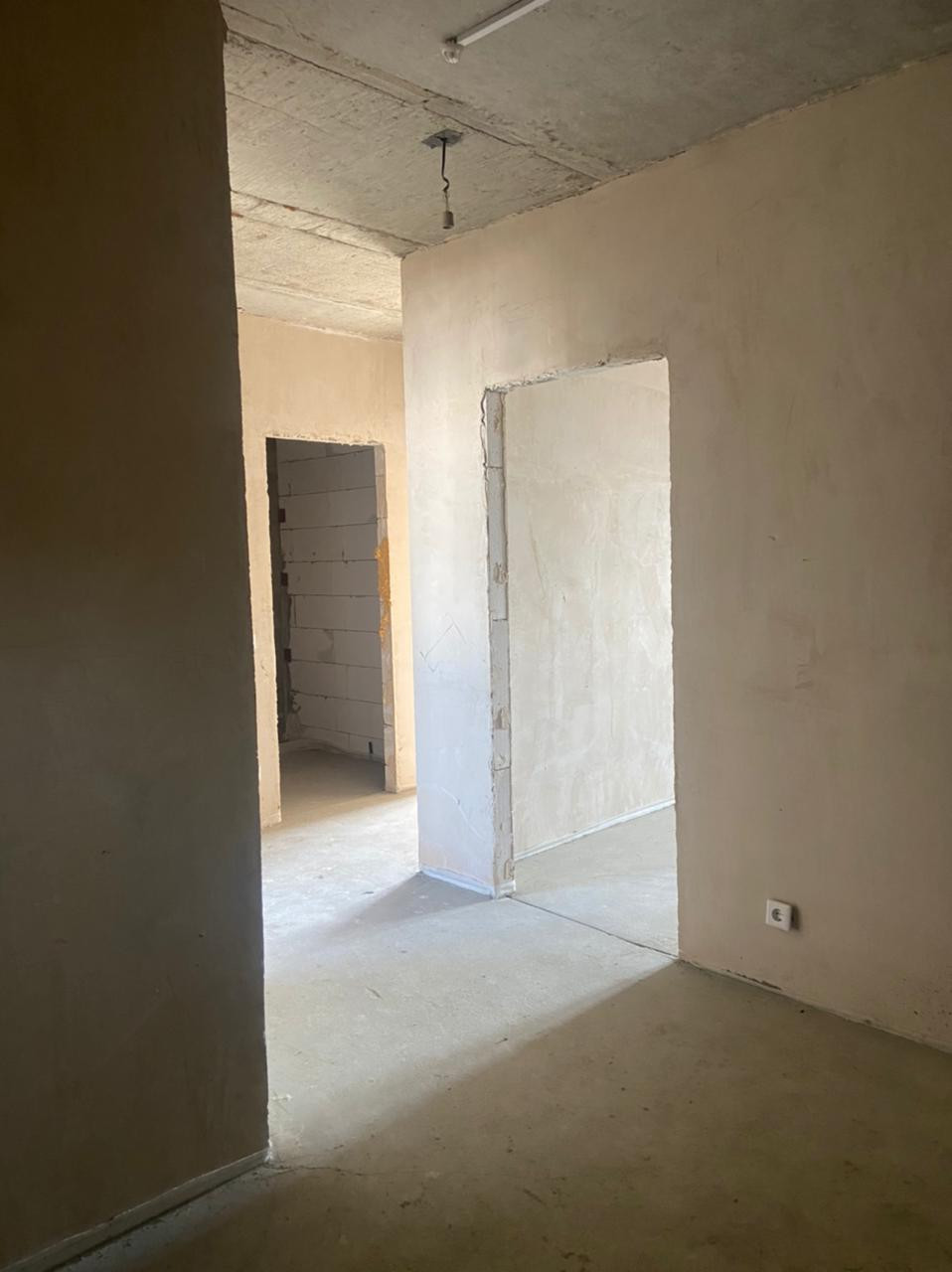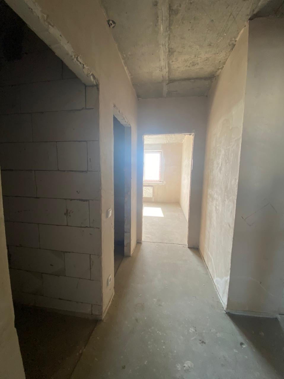 Квартира с качественной предчистовой отделкой: стены выровнены и оштукатурены, на полу цементная стяжка, электропроводка разведена по всей площади, установлены коробки под розетки и выключатели. Отличный вид из окон.