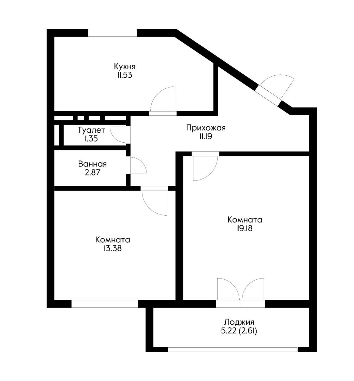 Общая площадь 62.11 м2