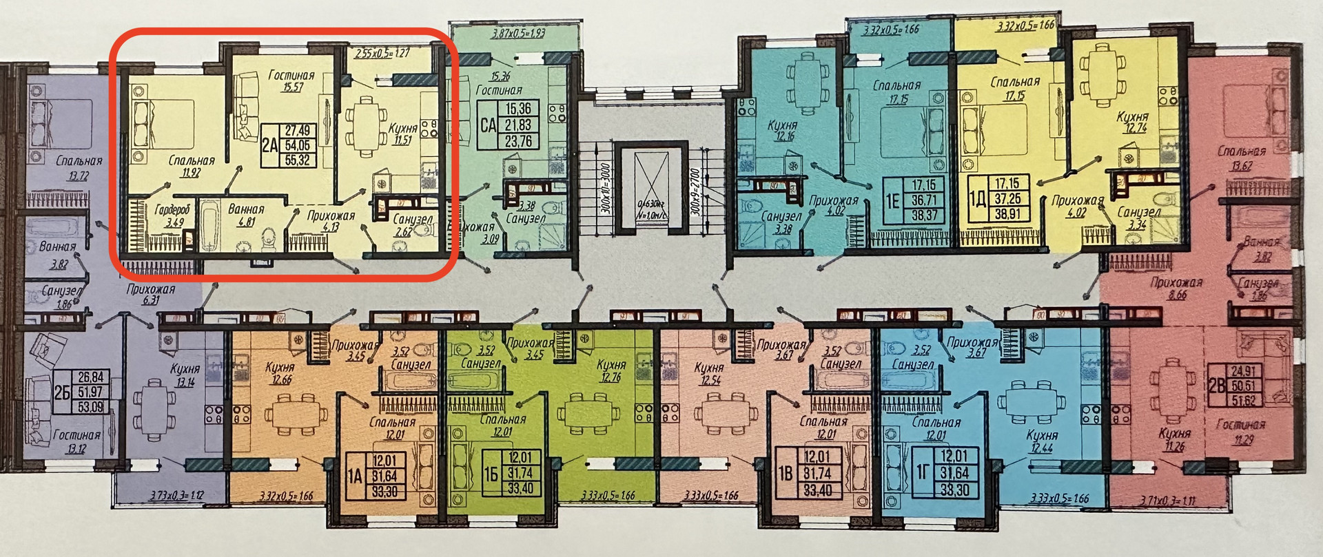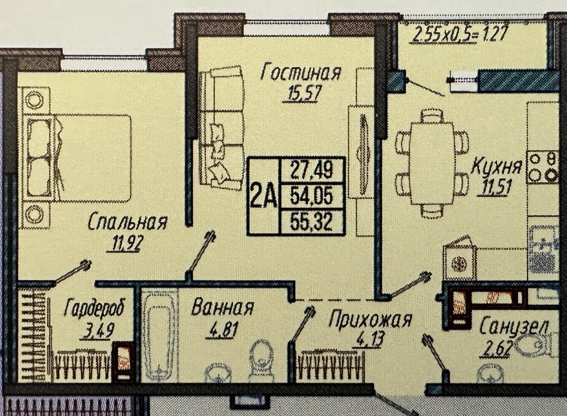 Общая площадь 55.32 м2