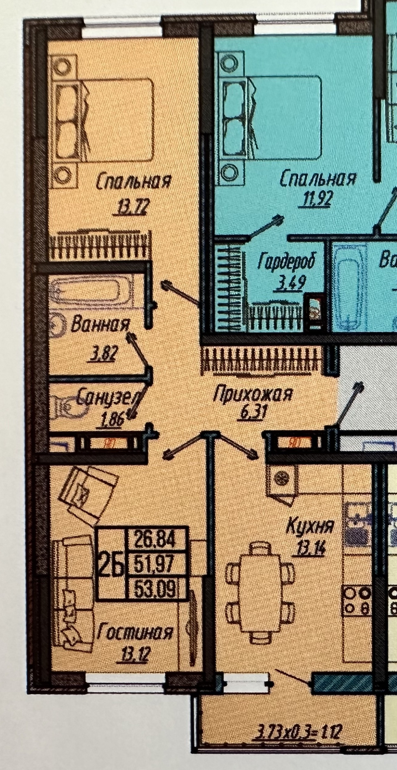 Общая площадь 53.09 м2