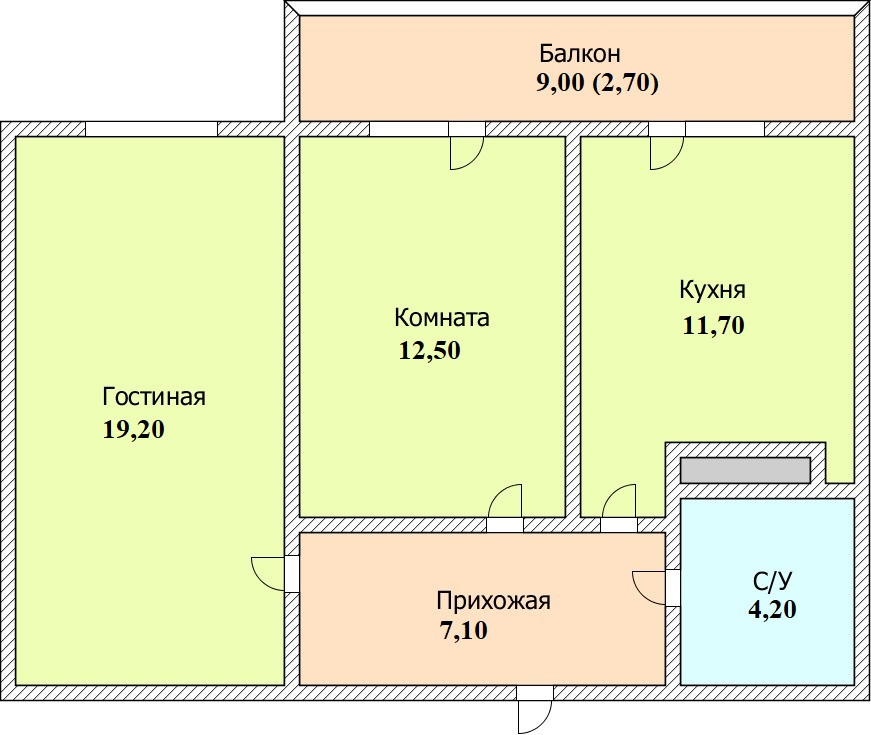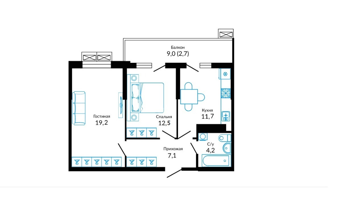 Общая площадь 54.7 м2