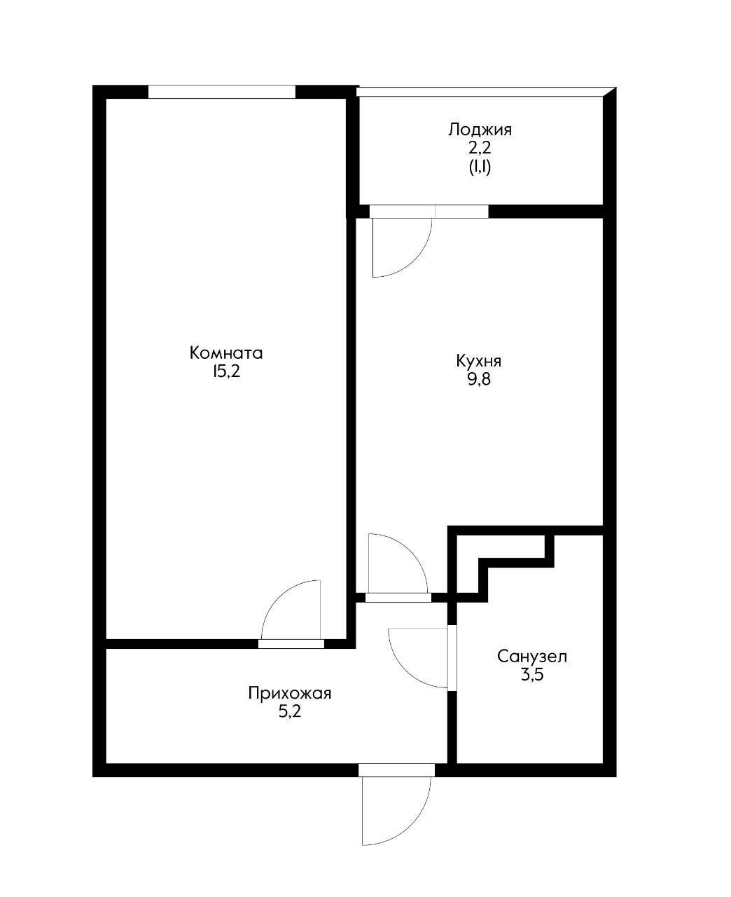 Жилая площадь 15.2 м2