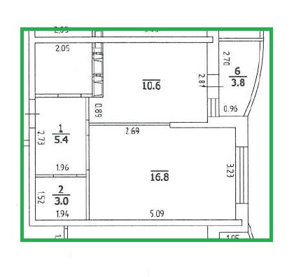 Общая площадь 43.6 м2