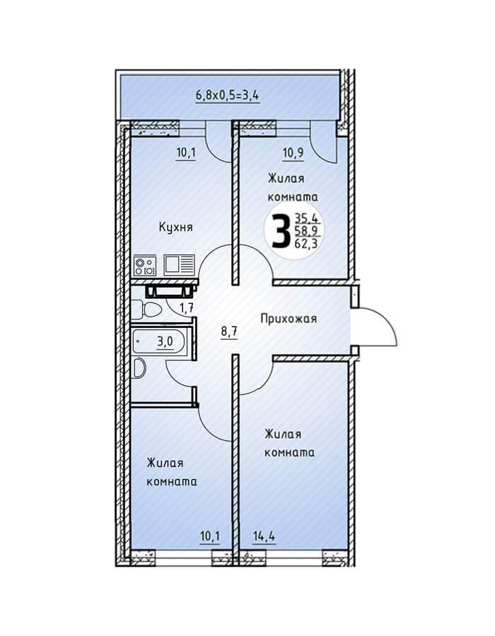 Количество комнат 3