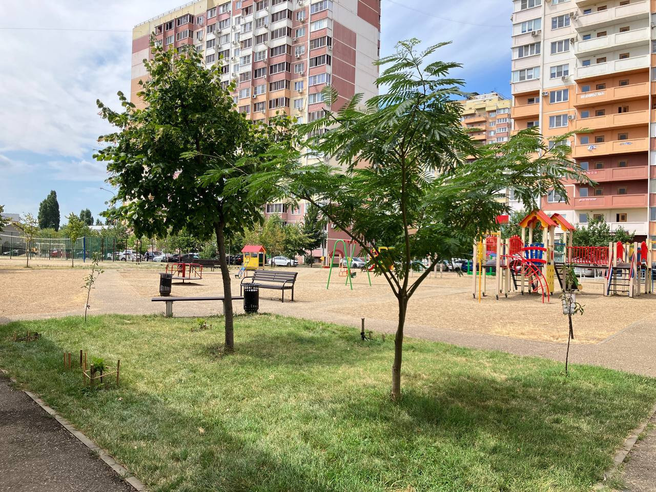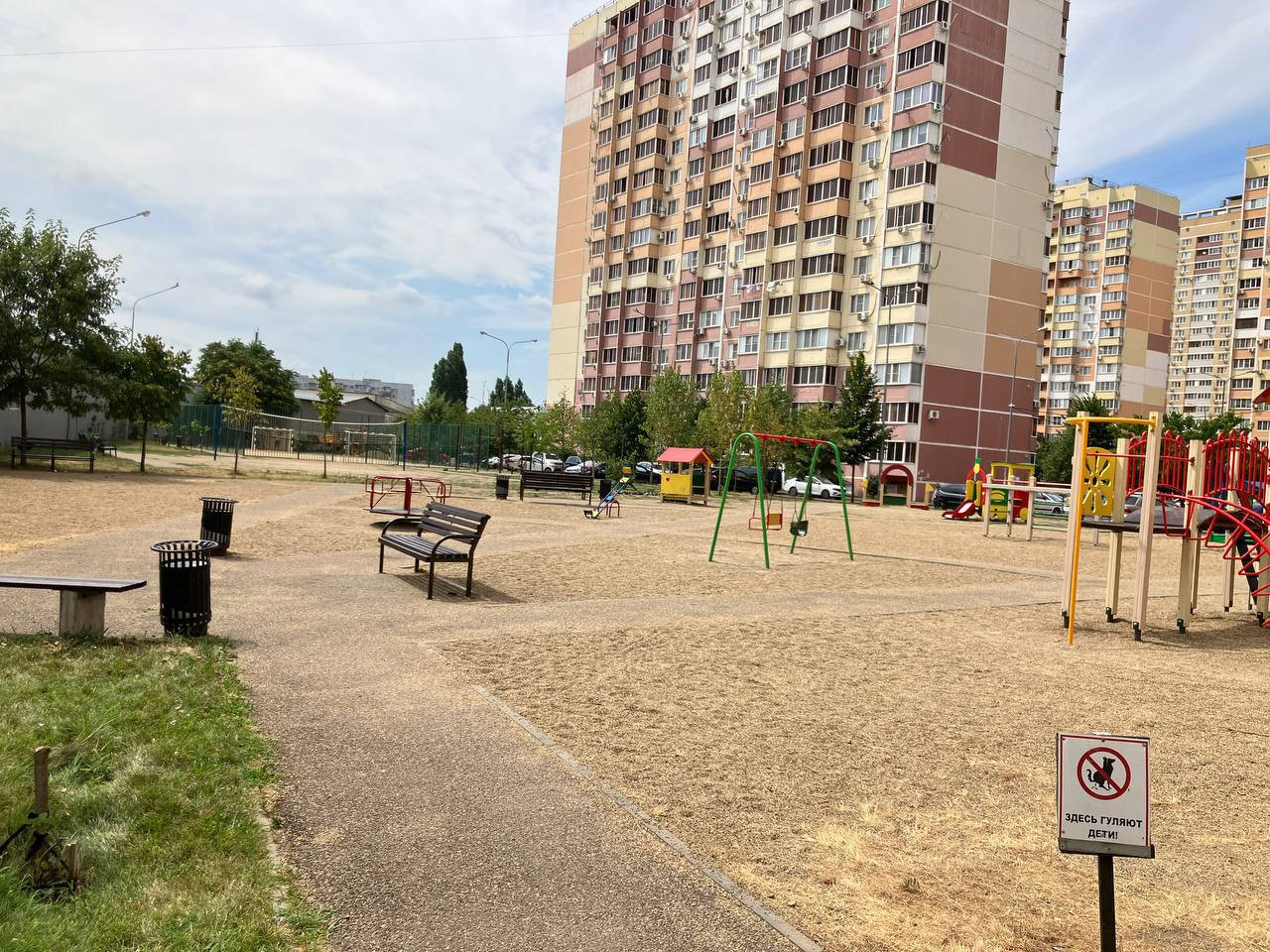 Остановки общественного транспорта и трамвая в пешей доступности. Просторная детская площадка. Вокруг ЖК полно места для выгула домашних животных.