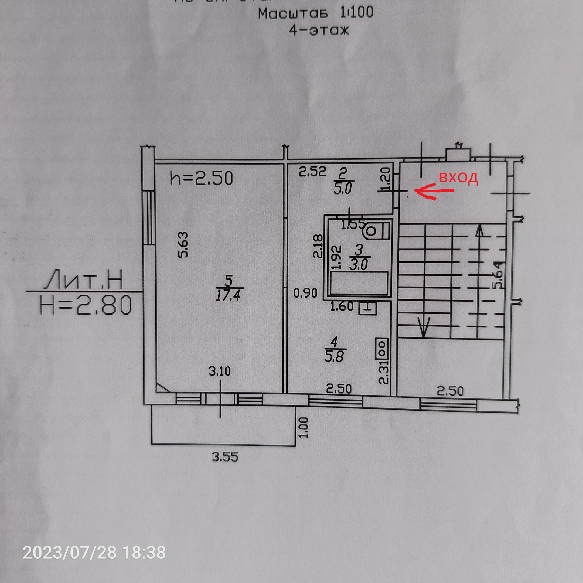 Высота потолков 2.5 м