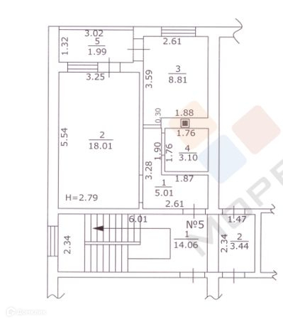 Высота потолков 2.8 м