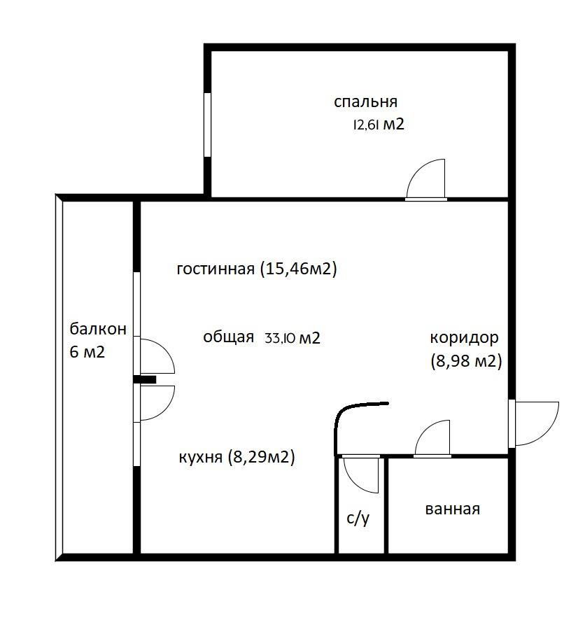 Жилая площадь 33 м2