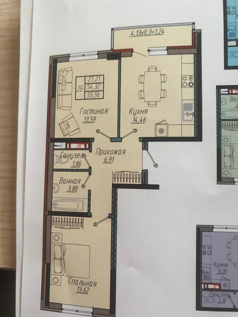 Общая площадь 52 м2