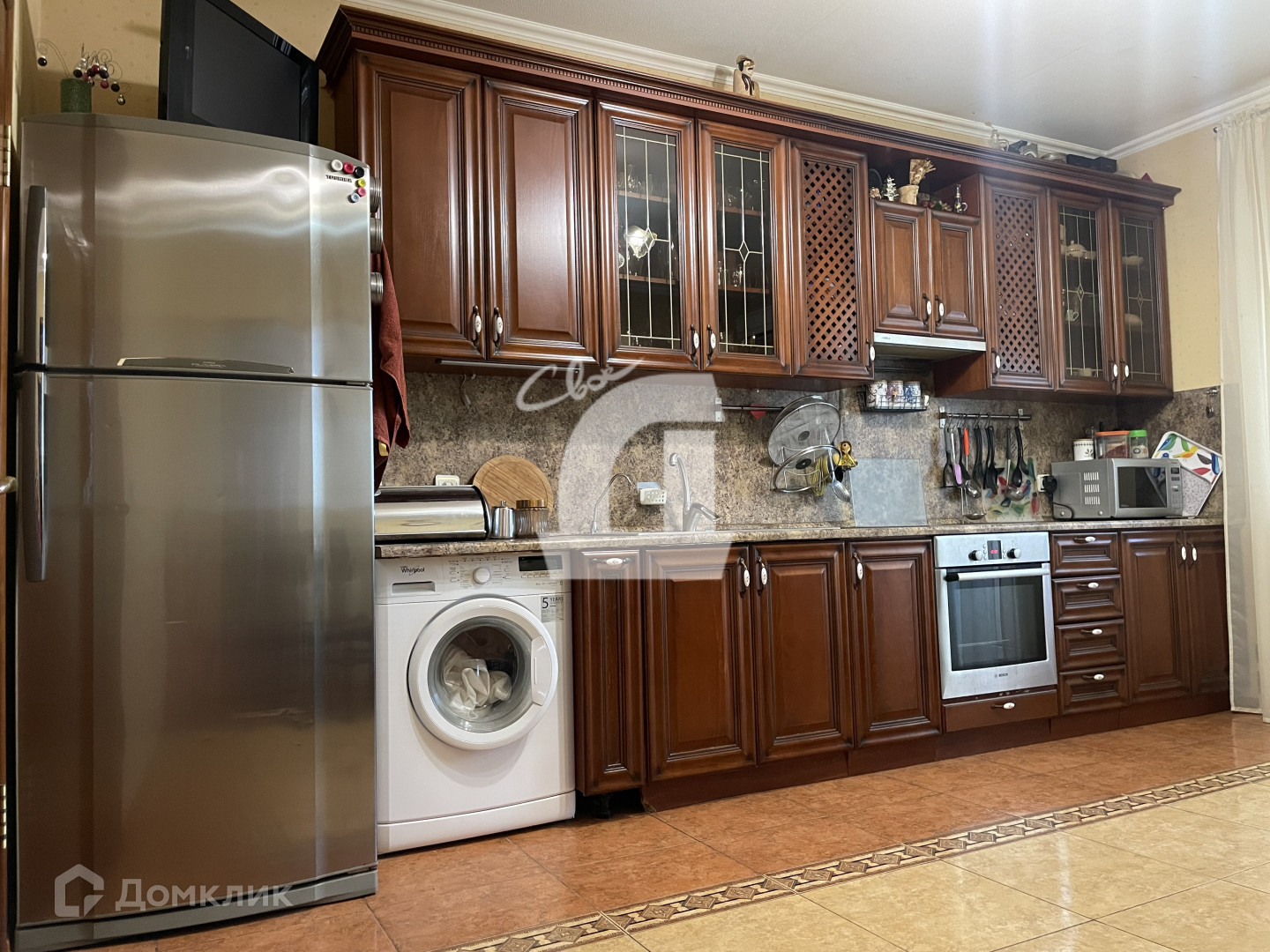 Евроремонт. В квартире два санузла. Два балкона, кладовка, в коридоре гардеробная. Остается вся мебель и бытовая техника.