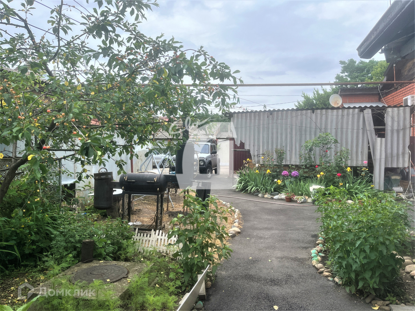 Во дворе есть свой огород, рядом кладовка и навес для зоны отдыха.