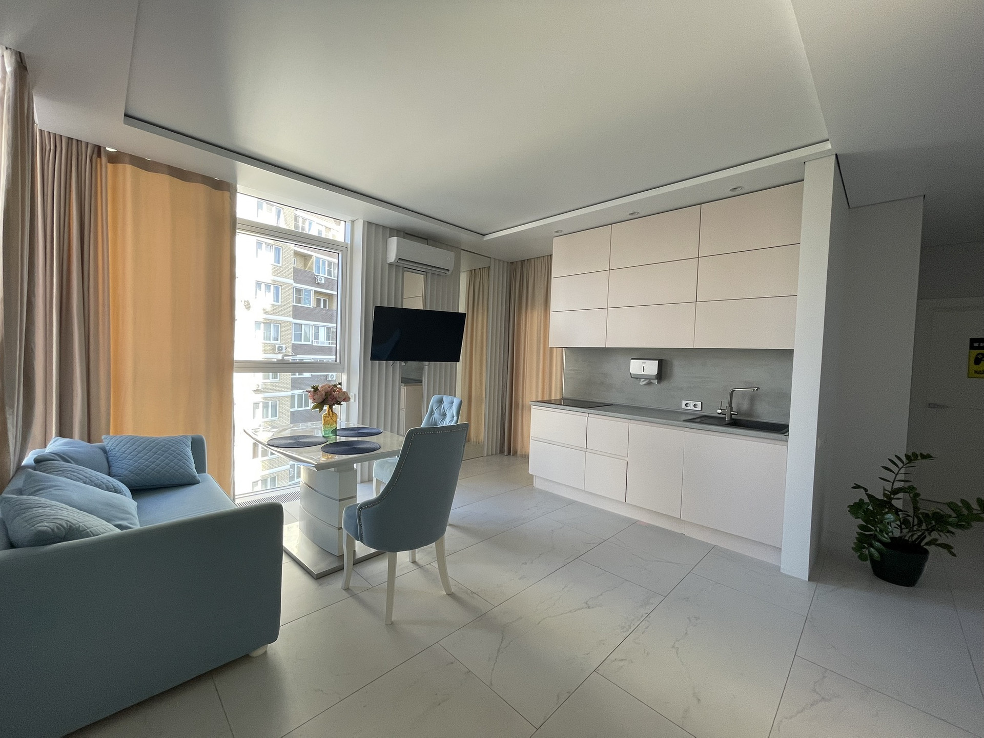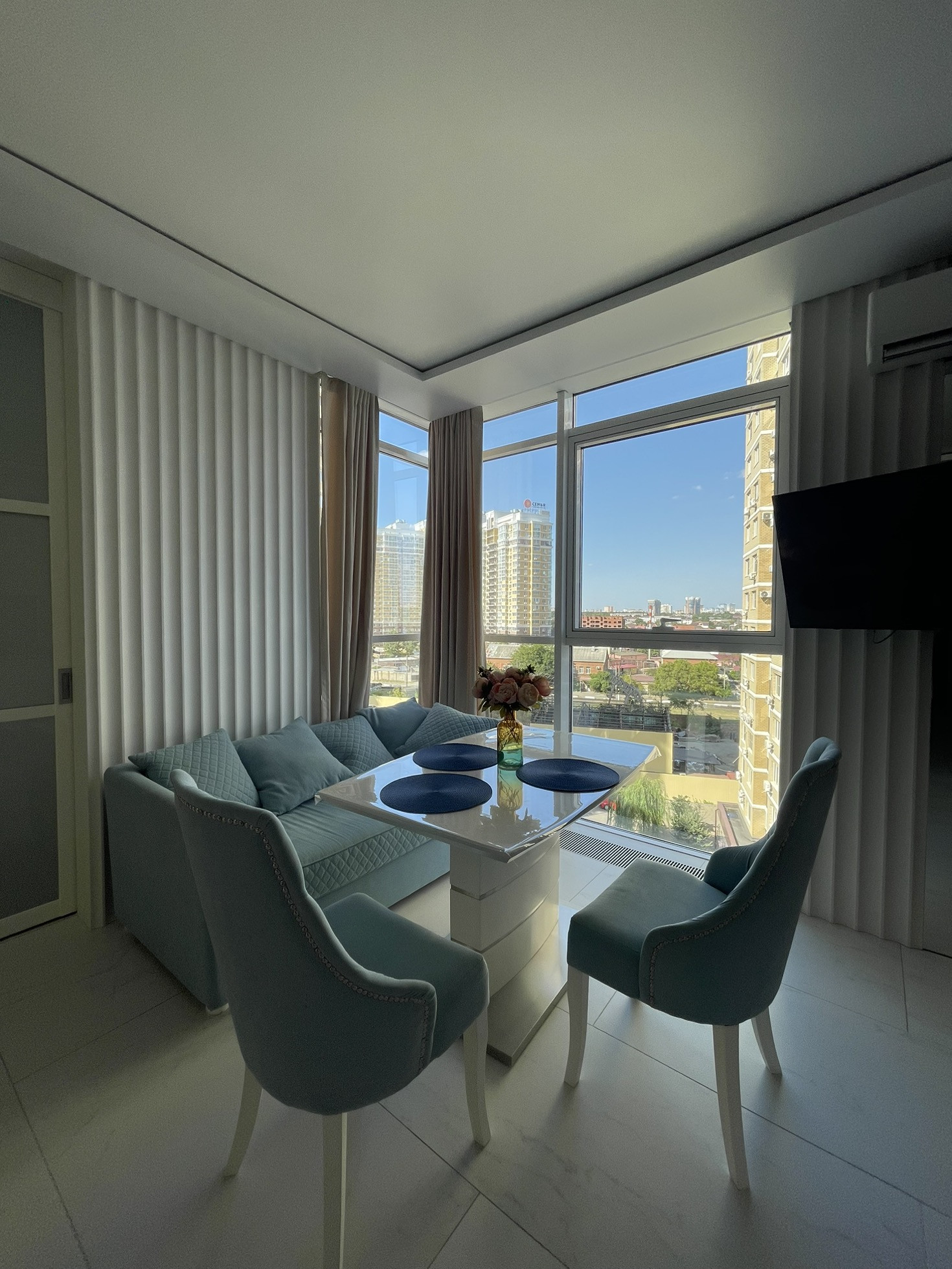 Все окна -панорамные, квартира светлая, теплая. На лоджии установлен тёплый пол,можно сделать зону отдыха. Территория дома закрытая, ко
