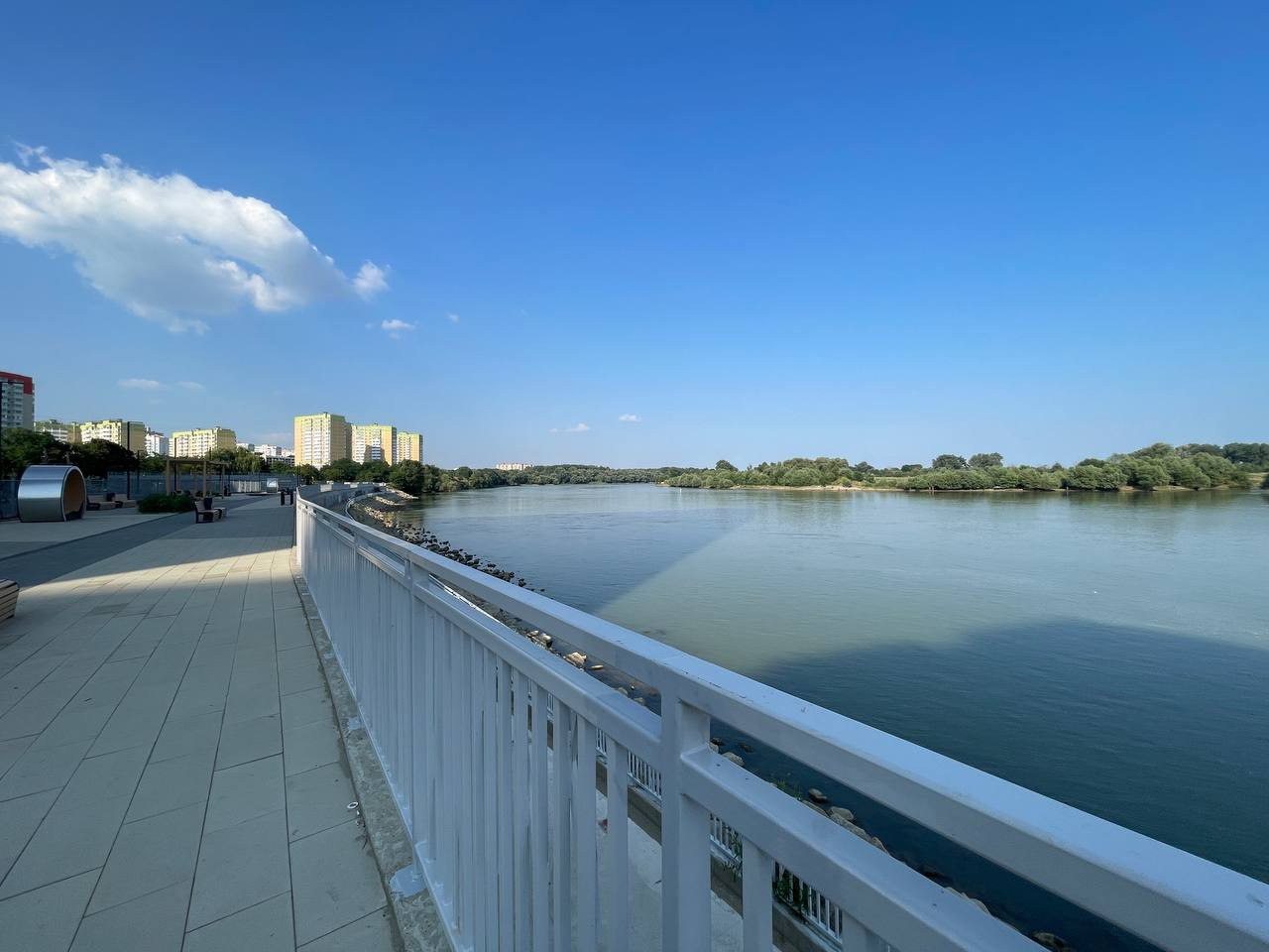 Собственная двухтеррассная набережная с ночной подсветкой и безопасным спуском к реке.