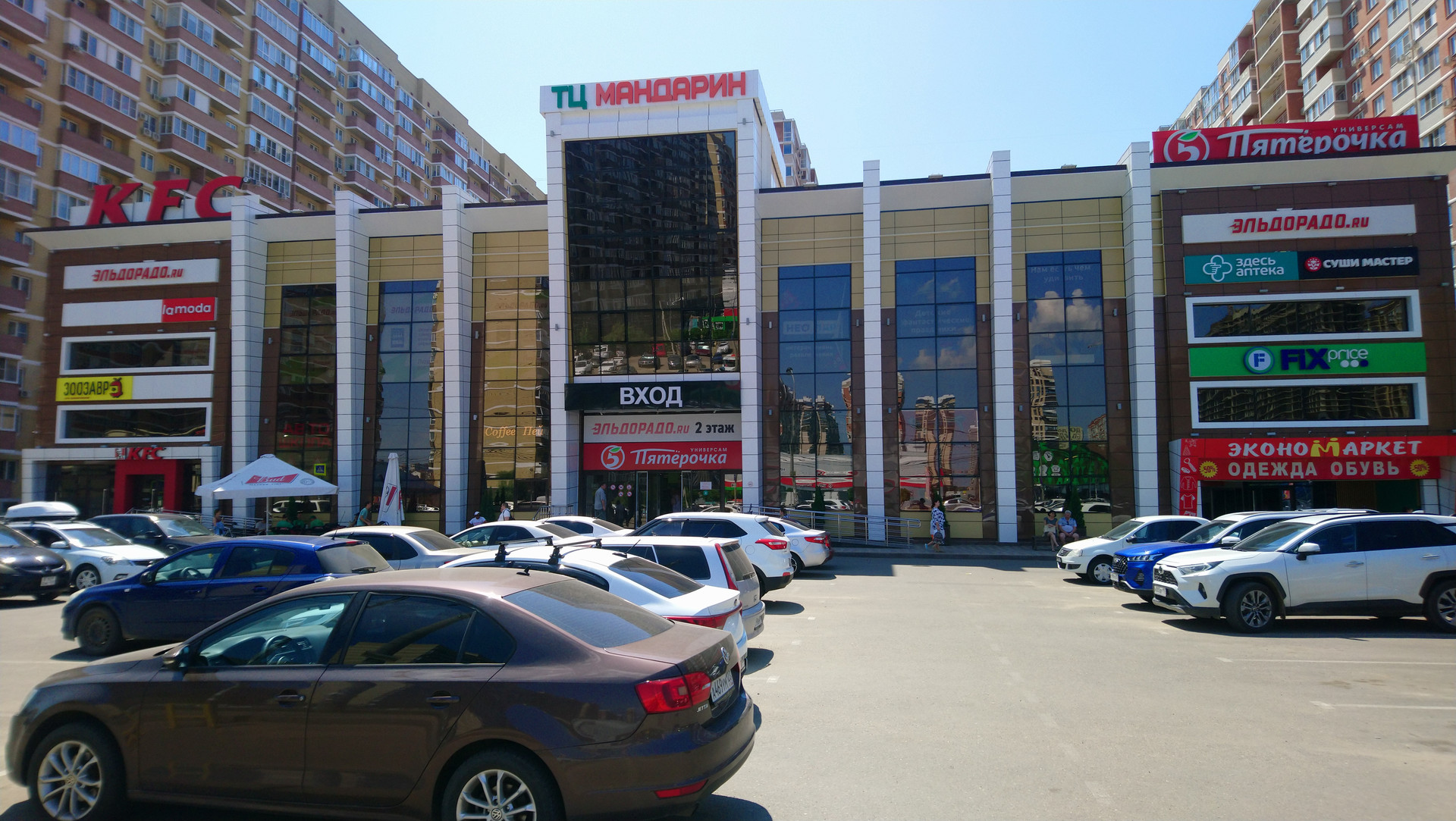 Магазины: ТЦ Стрелка (Магнит, одежда, KFC, Алкотека, магазин для питомцев, Сбербанк и другое) и небольшой продуктовый рынок через дорогу. Рядом в новом ТЦ есть ДНС и пиццерия. В первом корпусе ЖК находится К&Б, пиво, фермерские продукты, пекарня. В соседнем доме Пятерочка, овощи. В шаговой доступности КРУГЛОСУТОЧНЫЙ Табрис, ТЦ Мандарин. В общем все, что только можно придумать, совсем рядом.