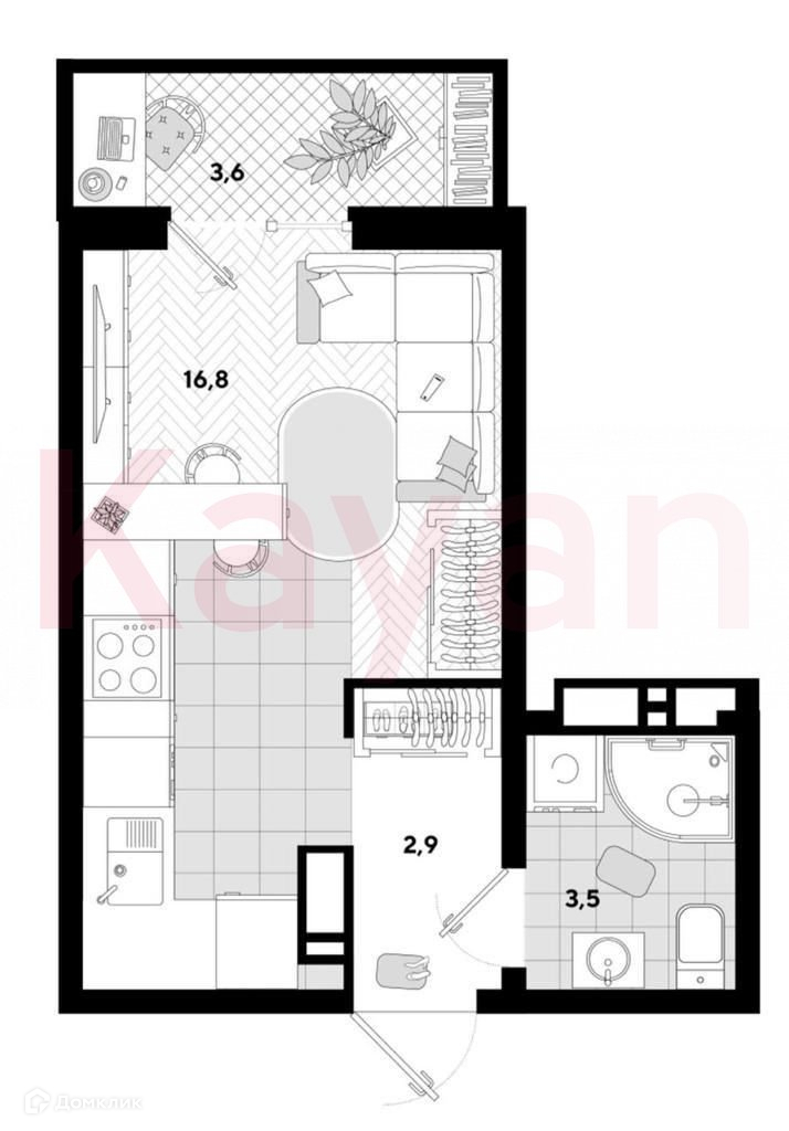 Жилая площадь 16.8 м2