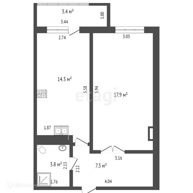 Общая площадь 43.3 м2