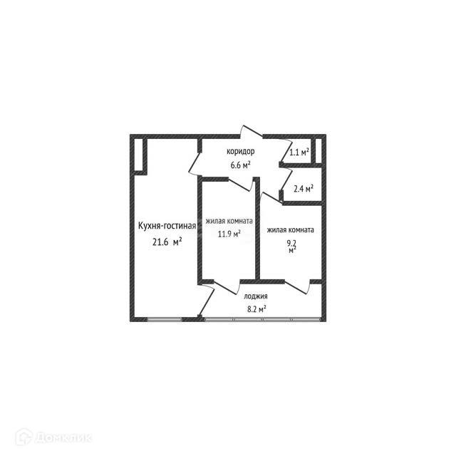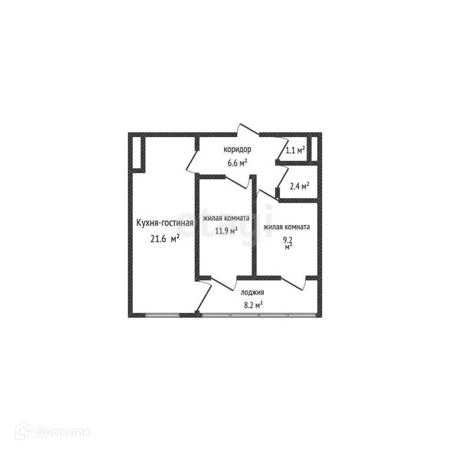 Общая площадь 52.8 м2