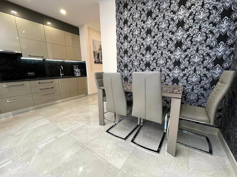 Квартира имеет современную ванную комнату, в которой установлена сантехника высокого качества. Просторная ванна  позволят расслабиться после долгого рабочего дня или провести время с пользой для здоровья. Окна квартиры выходят на тихую и зеленую территорию, что создает атмосферу спокойствия и уединения. Рядом расположены парк, супермаркеты, рестораны, школы и детские сады, что делает проживание в данном районе комфортным и удобным для всей семьи.