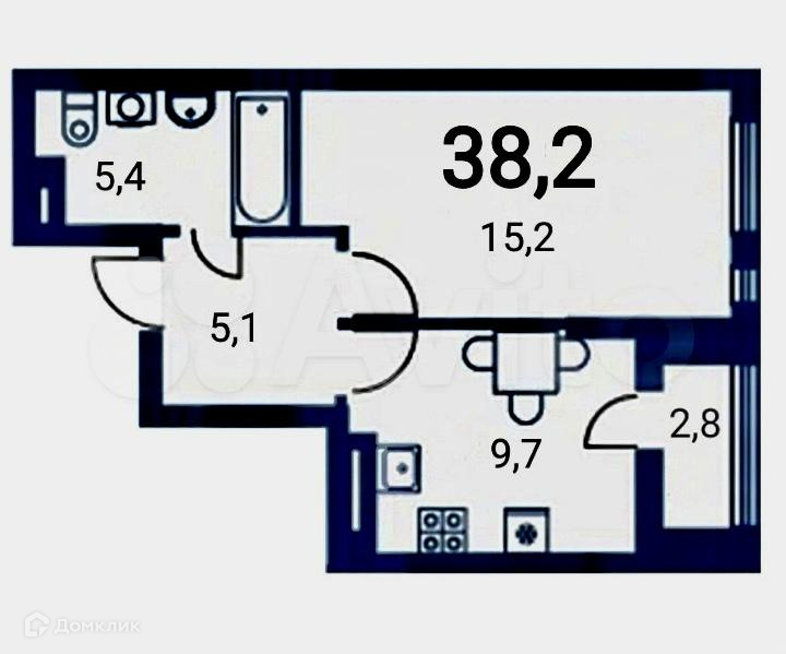 Общая площадь 35.8 м2