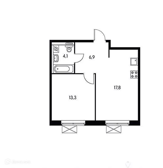 Общая площадь 42.1 м2