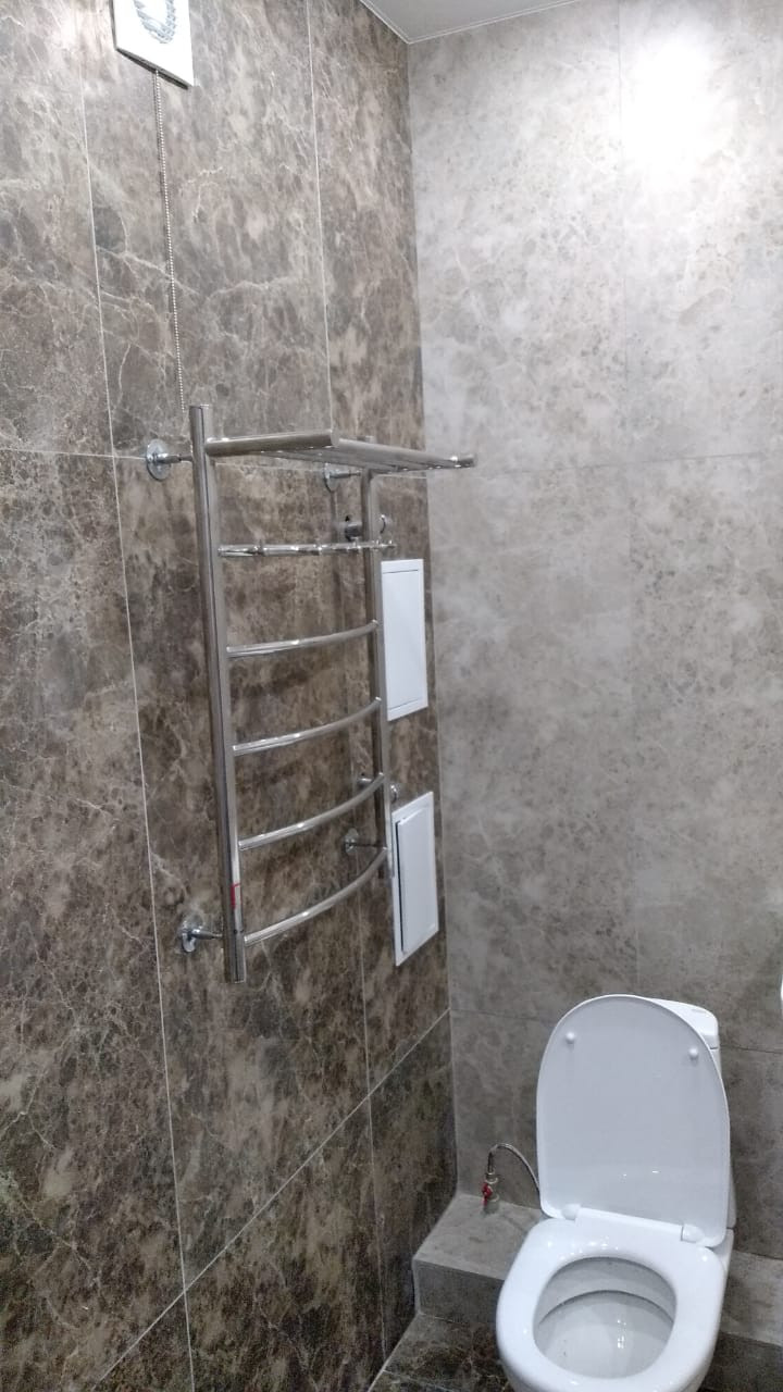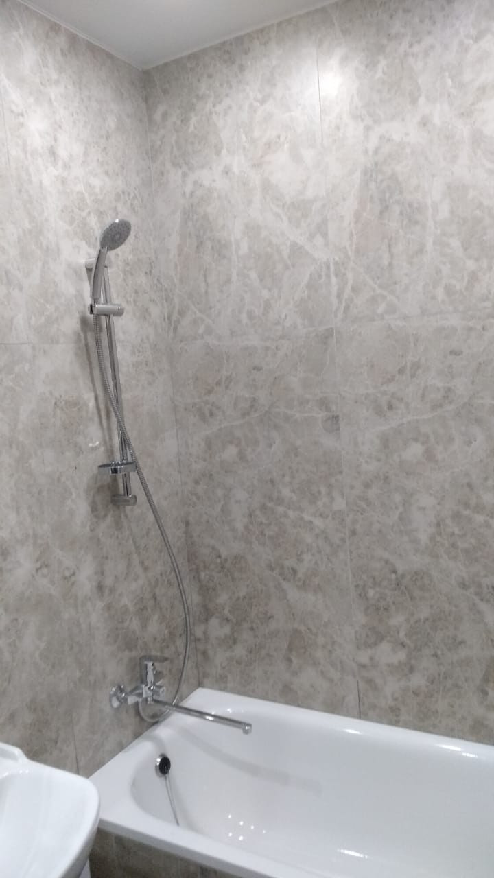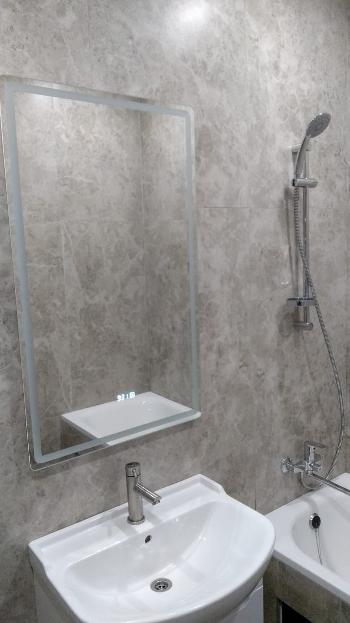 Хороший ремонт: на полу керамогранит, стены окрашены, установлен дополнительный радиатор отопления, дополнительные розетки, в том числе и на балконе. Натяжные потолки с светодиодными светильниками в количестве 12 шт., новая входная дверь с хорошим классом взломостойкости, утеплением и звукоизоляцией, дверь в ванную Mario Rioli, покрытие натуральный шпон, в ванной на полу и стенах керамогранит 120х60, хорошая сантехника: качественный полотенцесушитель из нержавеющей стали с толстой стенкой, что исключает возможность протечек, белоснежные раковина с тумбой, зеркало с подсветкой, душевая стойка с лейкой и держателем для мыла. Также сделаны скрытые вывод воды, канализации и электророзетка под стиральную машину. В кухонной зоне сделан фартук из керамогранита. Балкон площадью 4 кв.м. застеклен и утеплен.