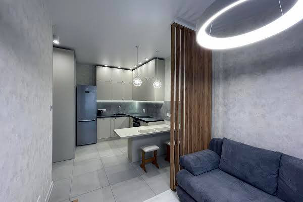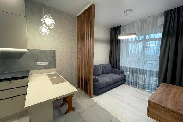 В квартире есть открытая планировка, что обеспечивает свободу для организации пространства по своему усмотрению. Просторная гостиная с большим окном заполняет помещение естественным светом, делая его светлым и уютным. Кухонный уголок со всем необходимым оборудованием предоставляет возможность готовить свои любимые блюда прямо дома.