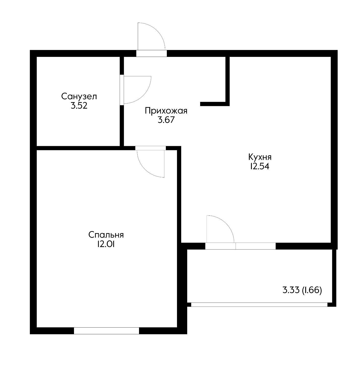 Общая площадь 33.4 м2
