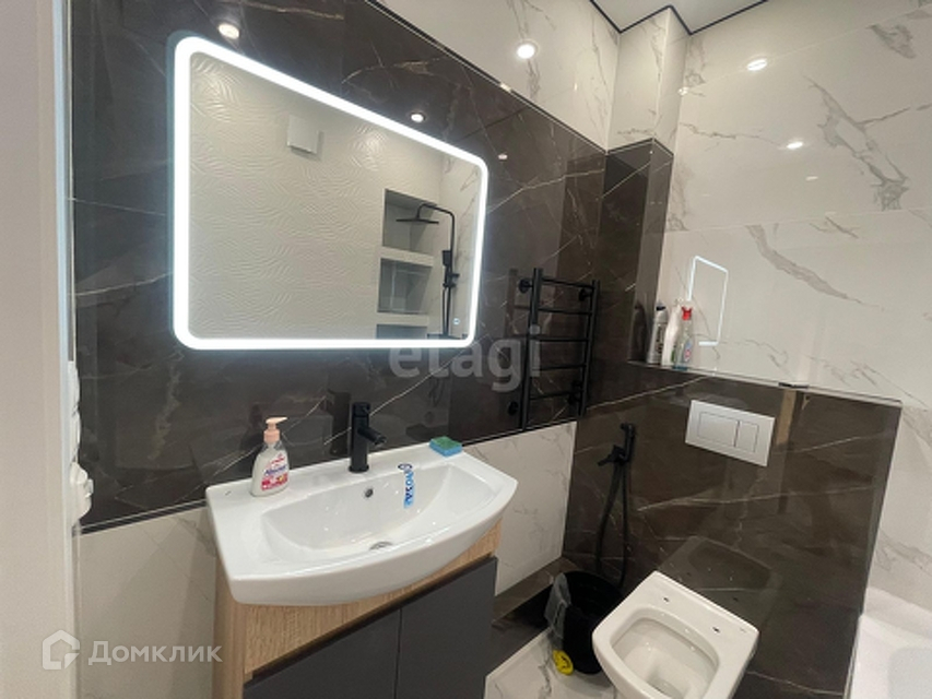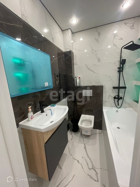-установлены: зеркало с подсветкой ,полотенцесушитель электрический,тумба с раковиной