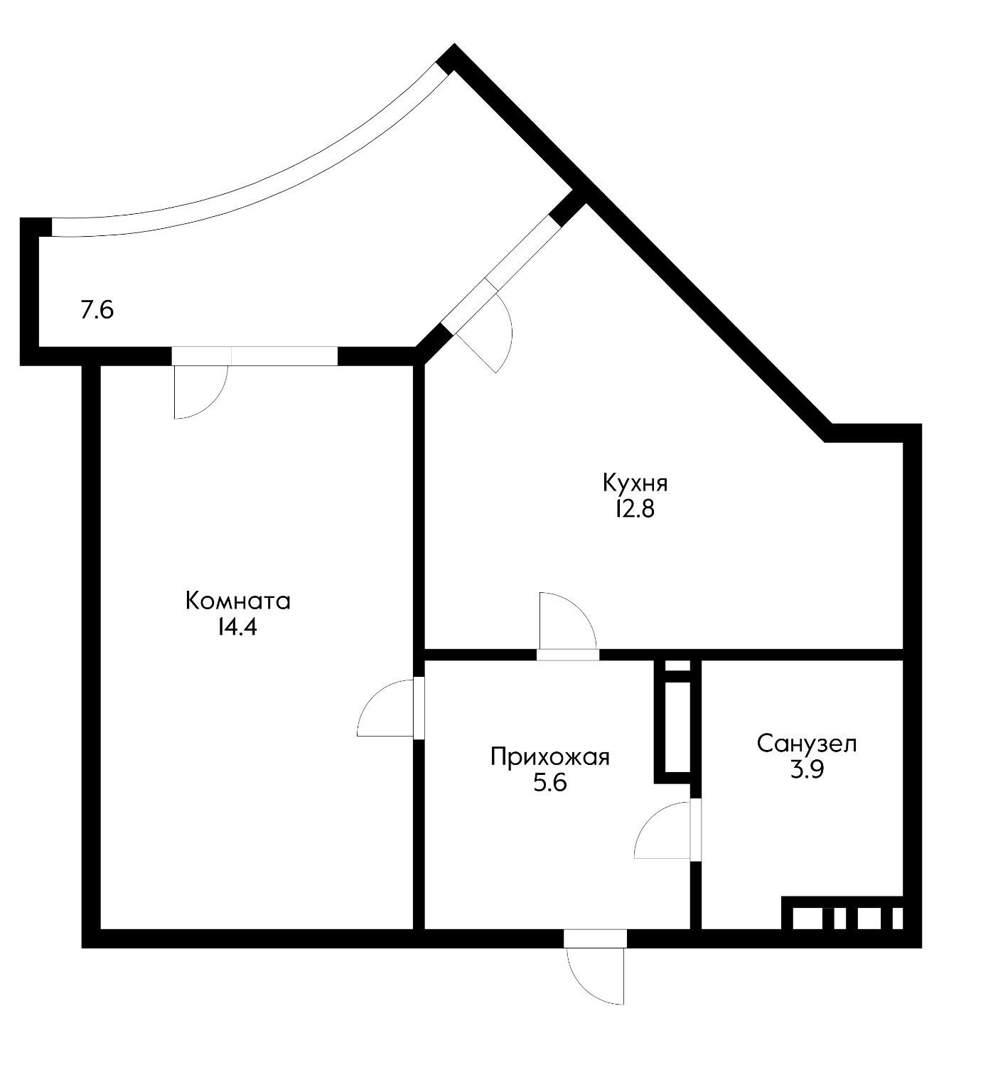 Жилая площадь 14.4 м2