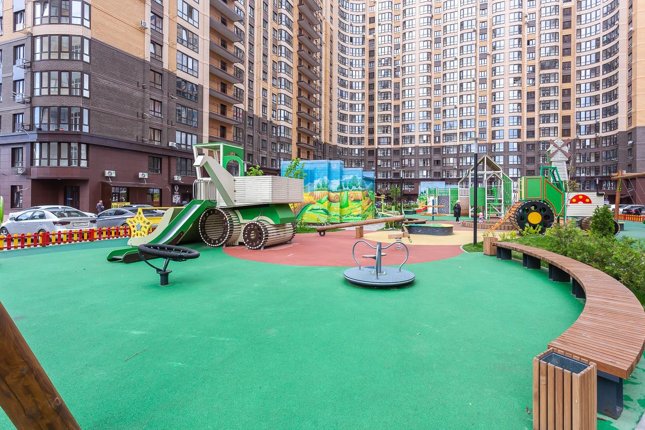 На территории: школа, детский сад, развивающие детские площадки, ландшафтный дизайн, фонтаны, прогулочный бульвар. Подземный паркинг, дизайнерские входные группы. Идеальная чистовая отделка, французские окна.