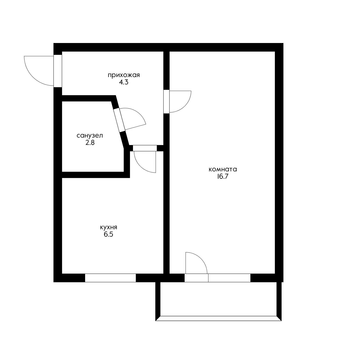 Общая площадь 32.9 м2