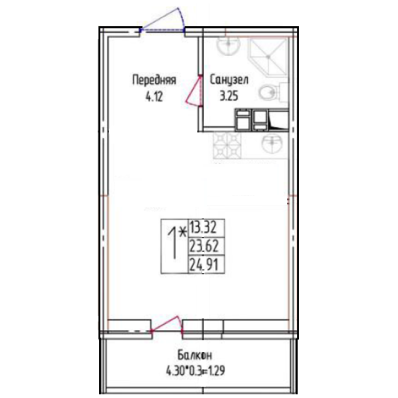 Общая площадь 25 м2