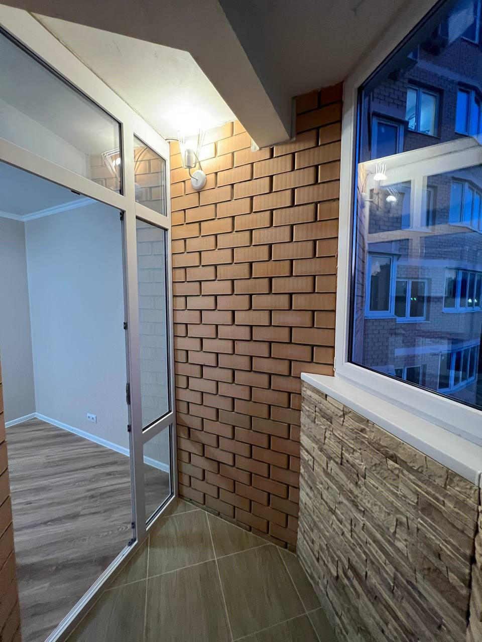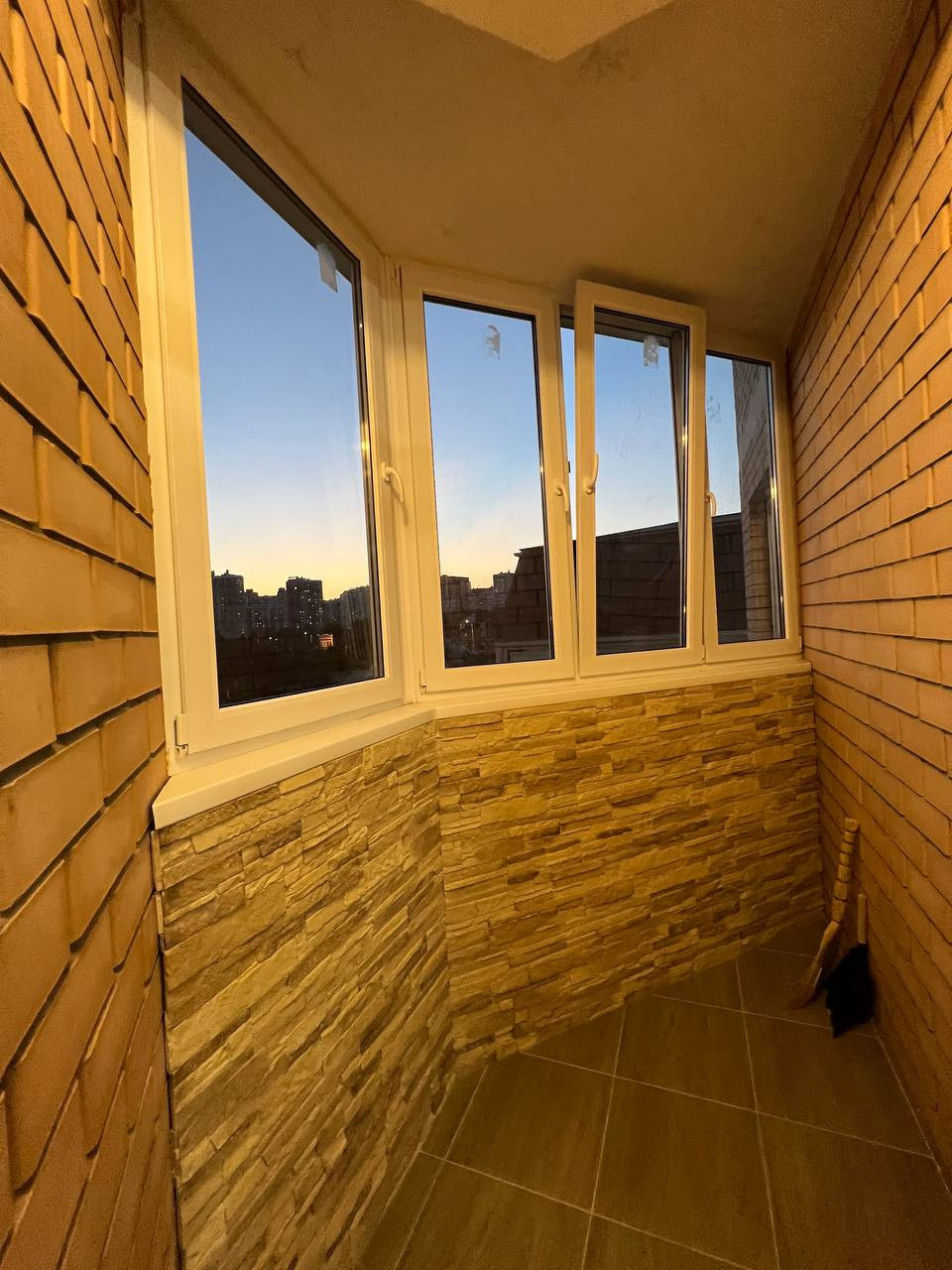 Балкон отделан и застеклён.