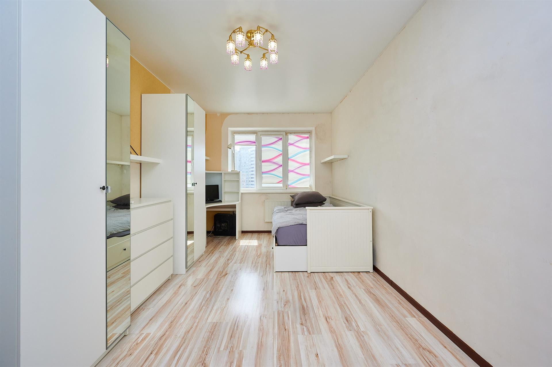 Квартира требует косметического ремонта, но вы сможете сразу же зайти и жить в ней или сдавать в аренду. Удобная планировка «бабочка» на две стороны делает эту квартиру особенно привлекательной. Она также находится на видовом этаже.