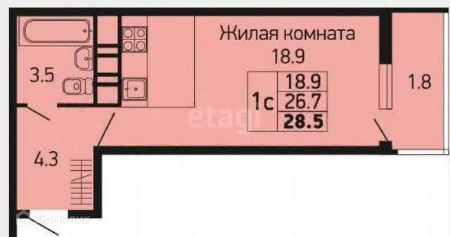 Общая площадь 28.5 м2