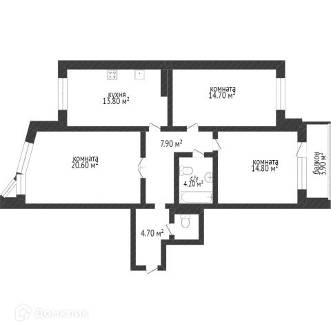 Общая площадь 70.3 м2