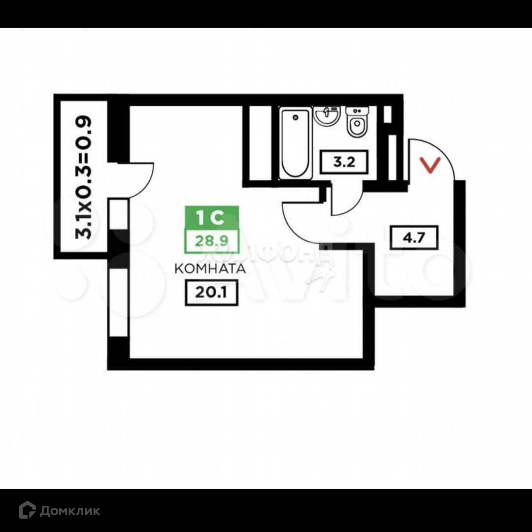 Общая площадь 28.4 м2