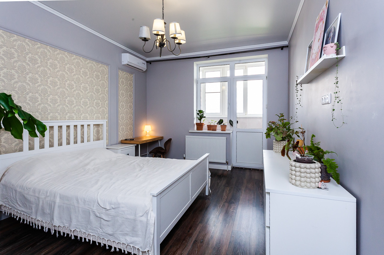 В квартире выполнен качественный стильный ремонт, остается все, что есть в квартире. Окна выходят на две стороны и, благодаря высокому этажу, вы можете наслаждаться прекрасными видами на город.