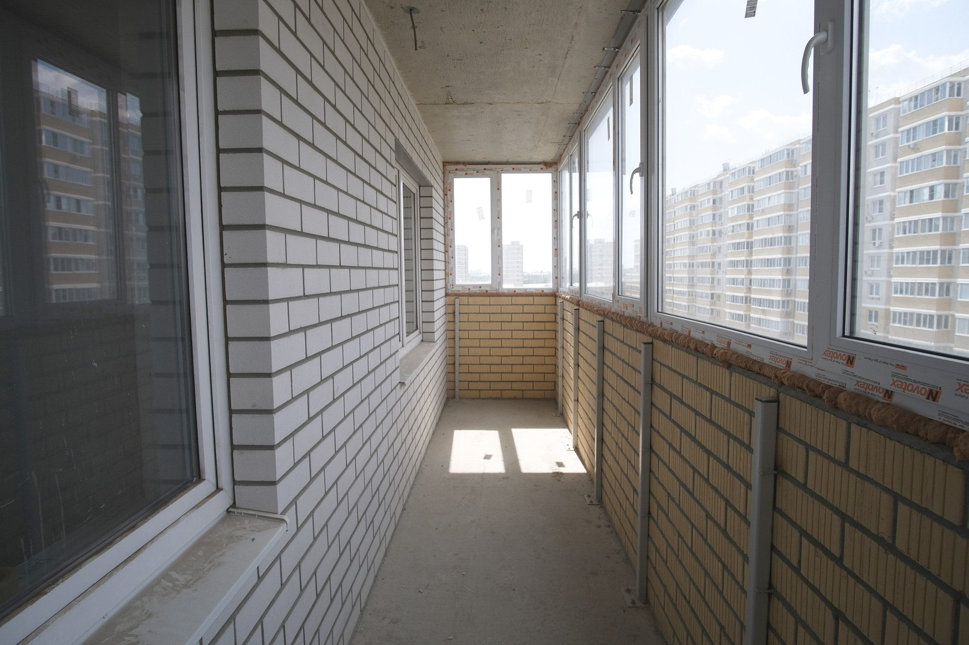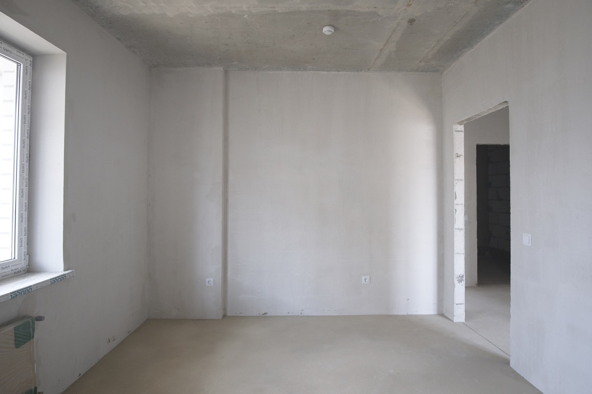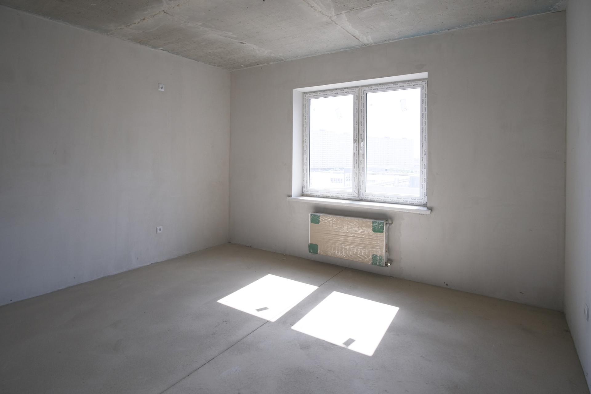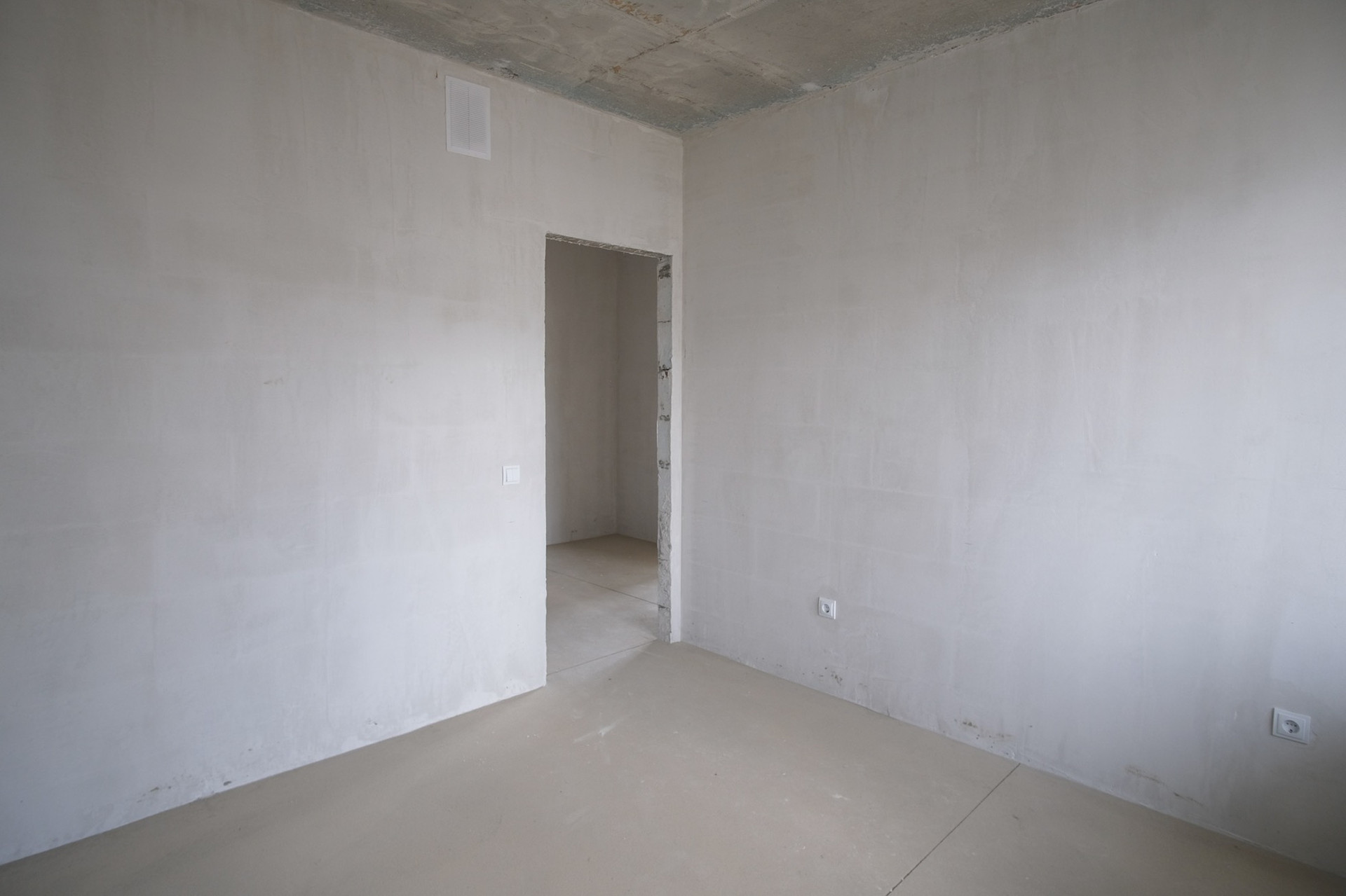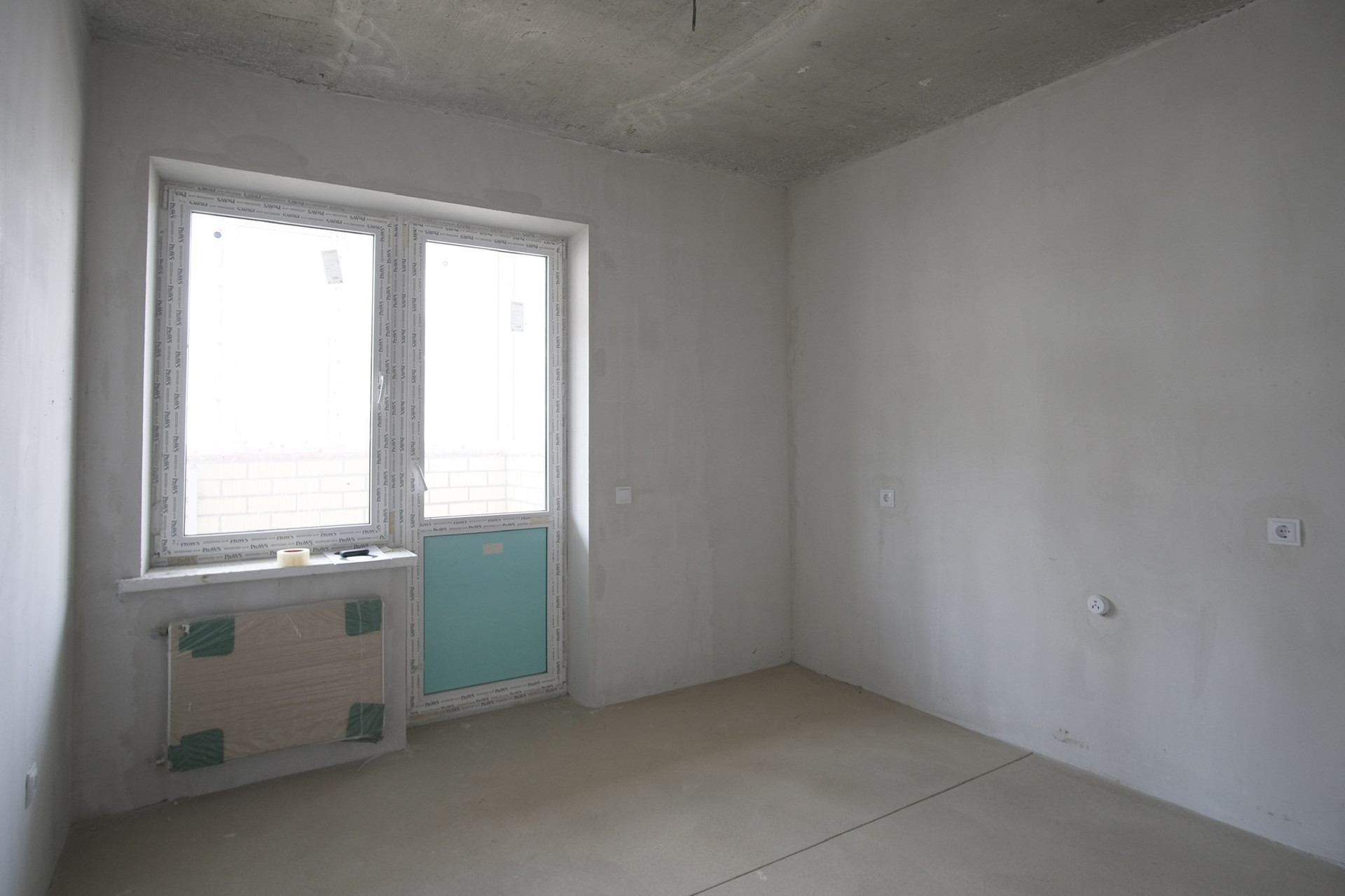 Отделка предчистовая: сделана разводка электрики, стены оштукатурены, на полу стяжка, лоджия застеклена.